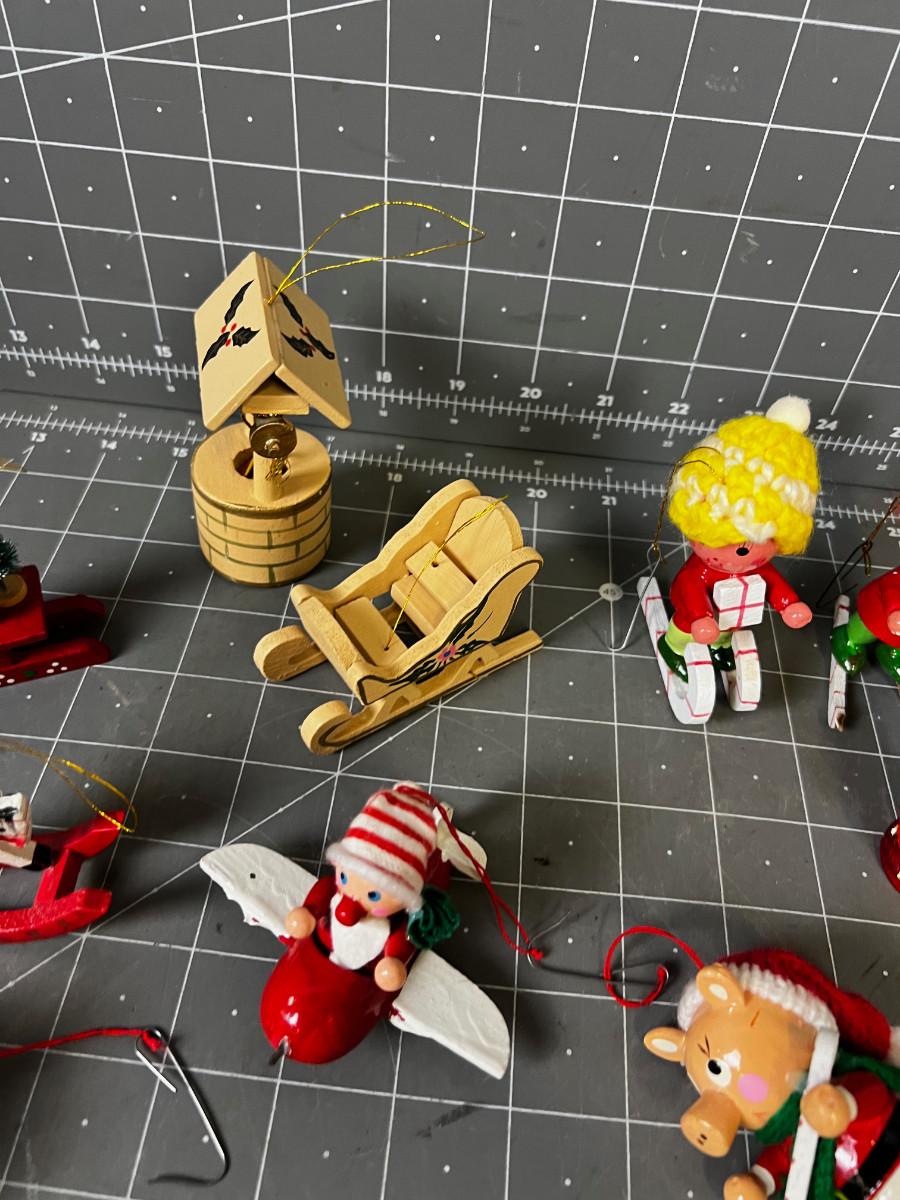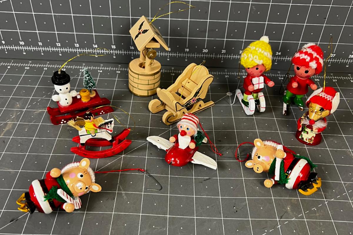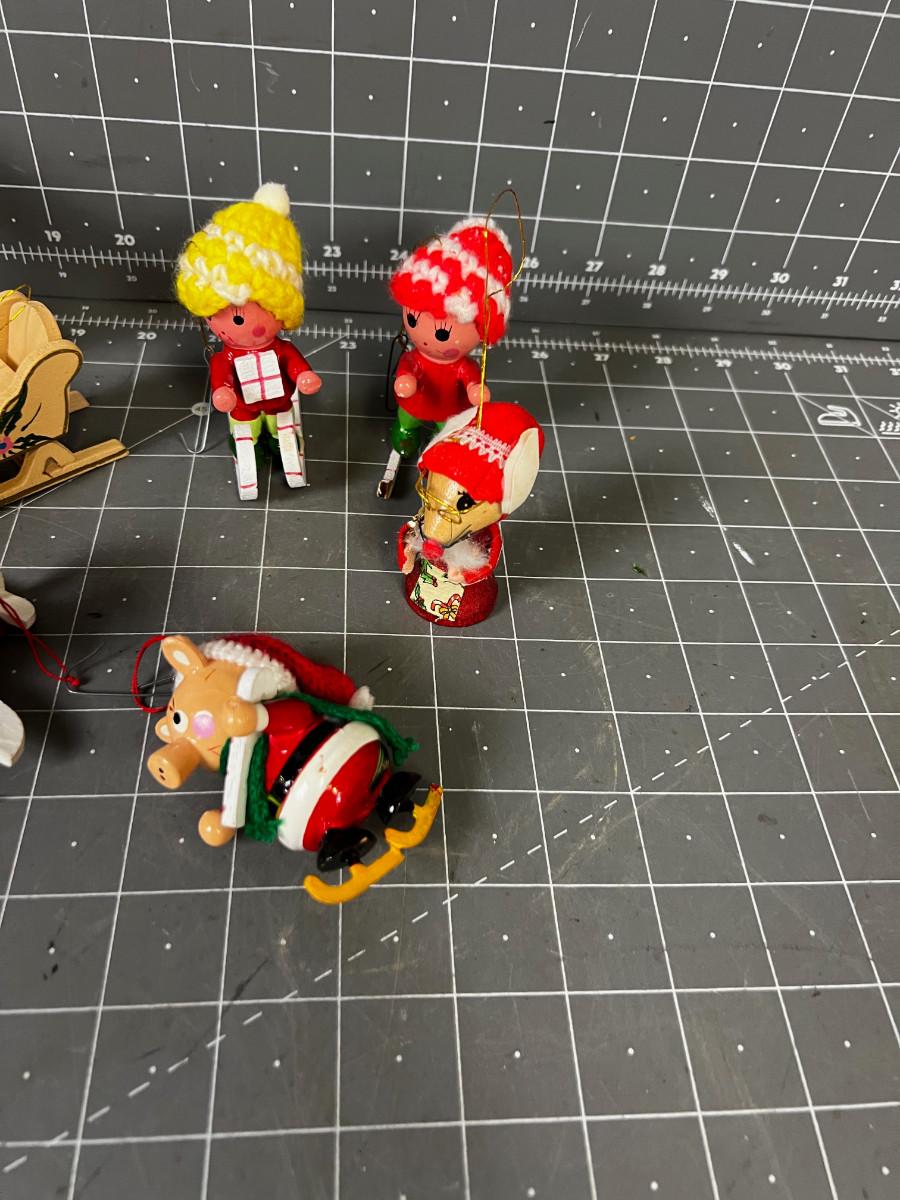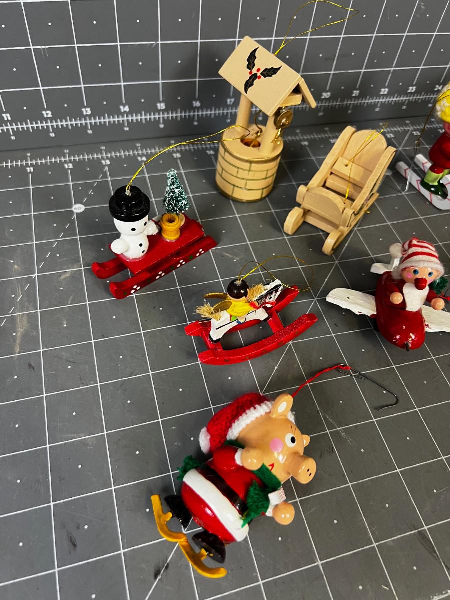 Collection of Wood Ornaments, Darling, including Skating Pigs