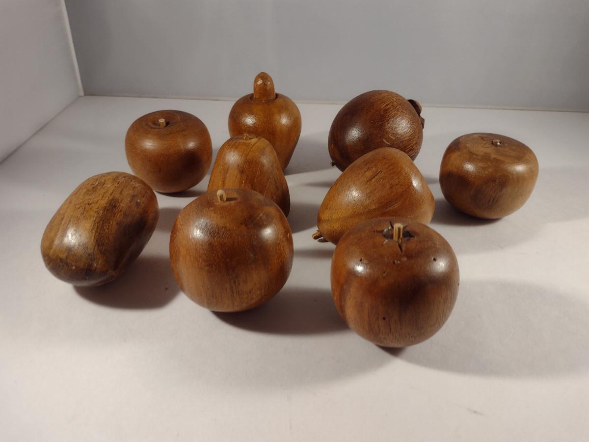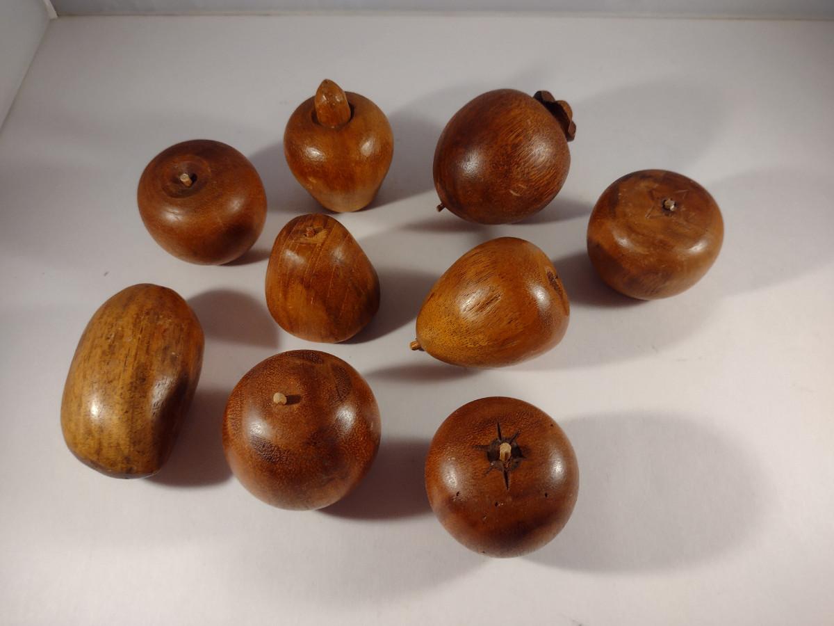 Collection of Wooden Fruit with Decorative Resin Pedestal Bowl