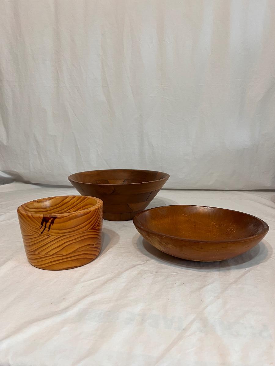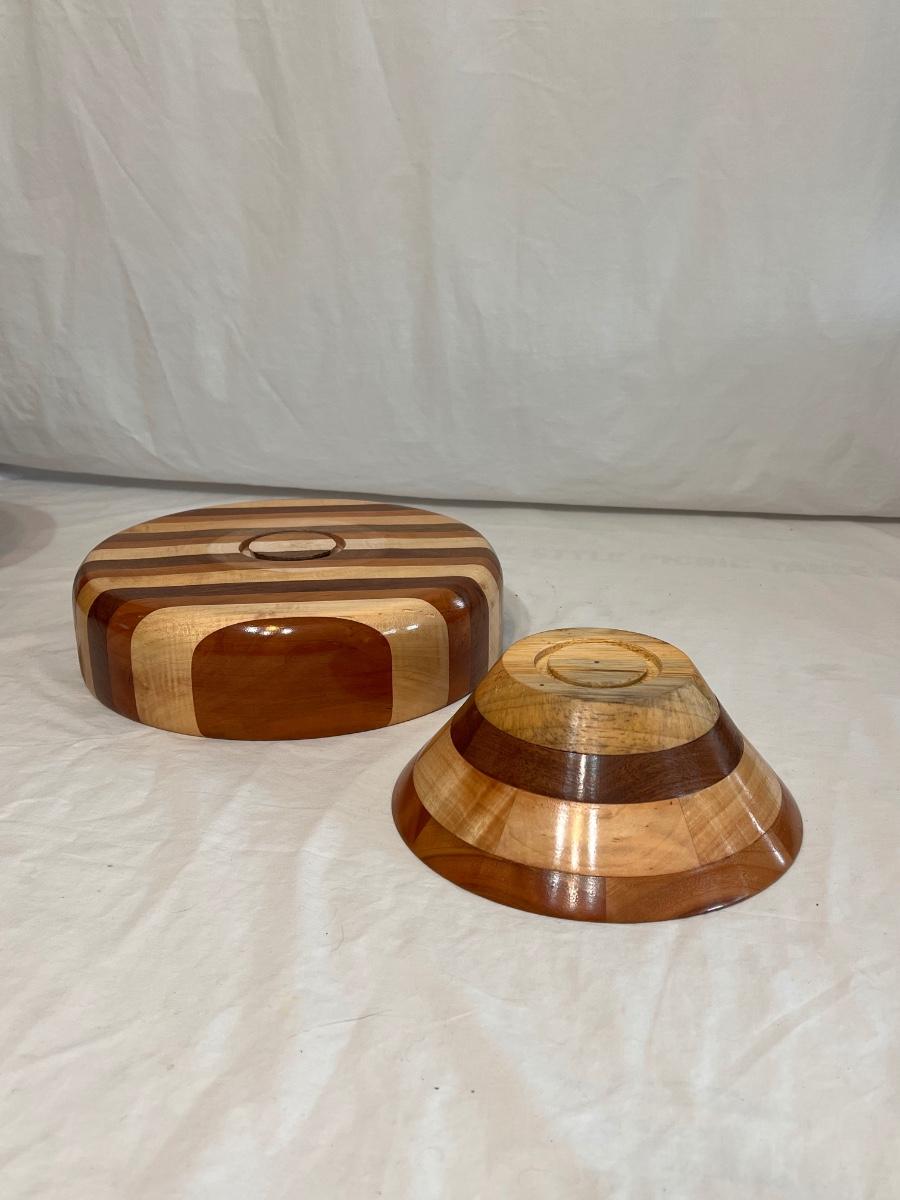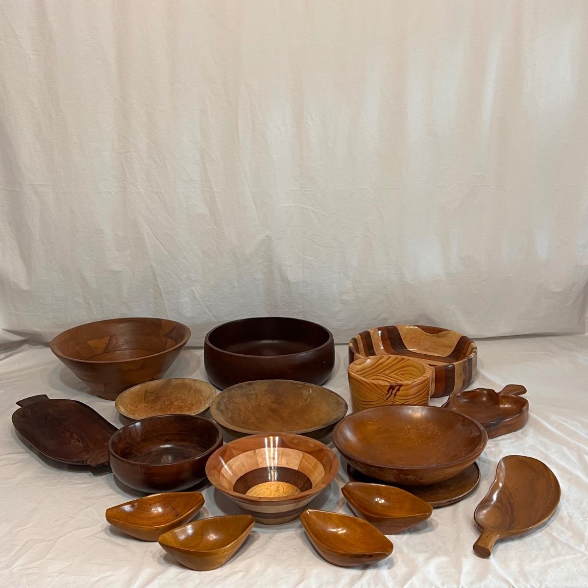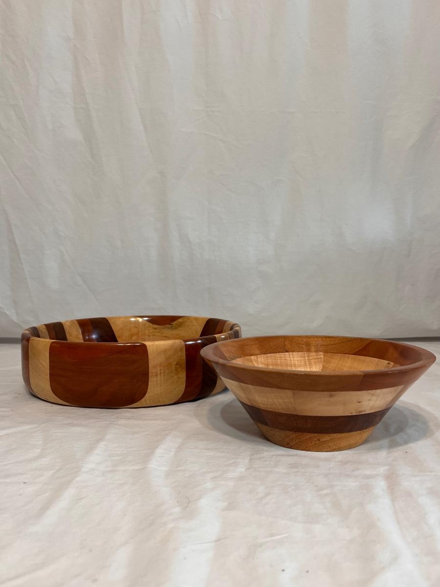This lot includes over fifteen wooden bowls and serving dishes. Some pieces appear to be handmade. The largest bowl is 12”D x 4.5”H and is made out of walnut. The multi-colored bowls are made out of walnut and maple. Some items may be for display only. Please see photos for details Shipping available.