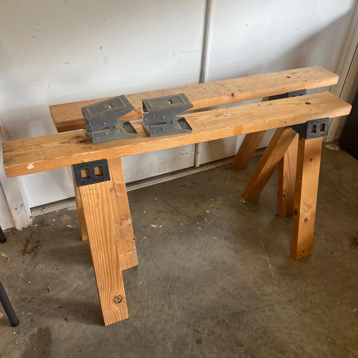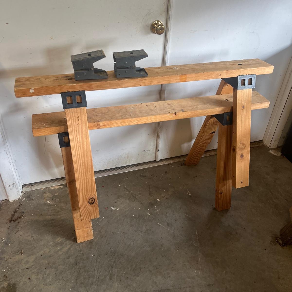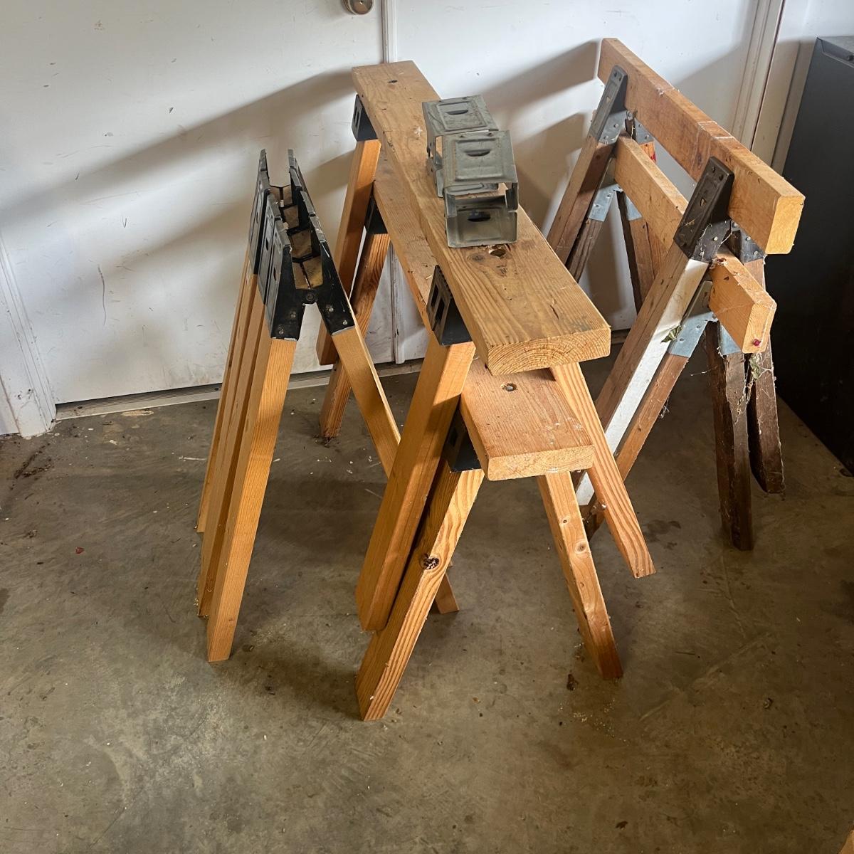 Collection of Wooden Sawhorses w/ Sawhorse Brackets (BG-MG)