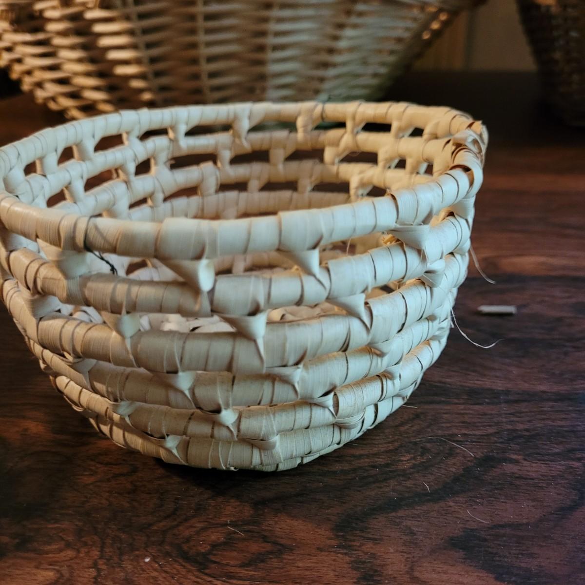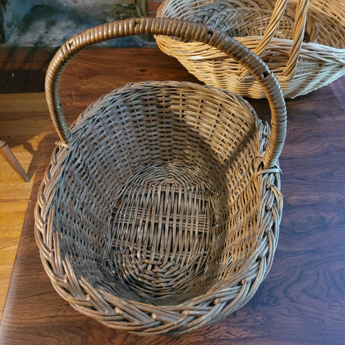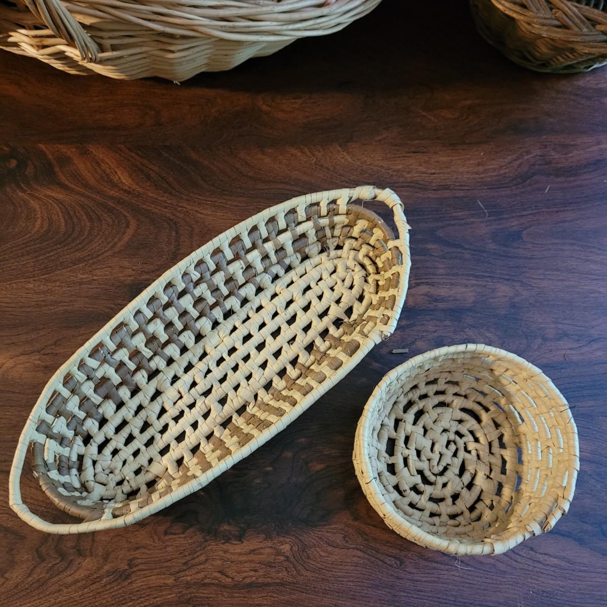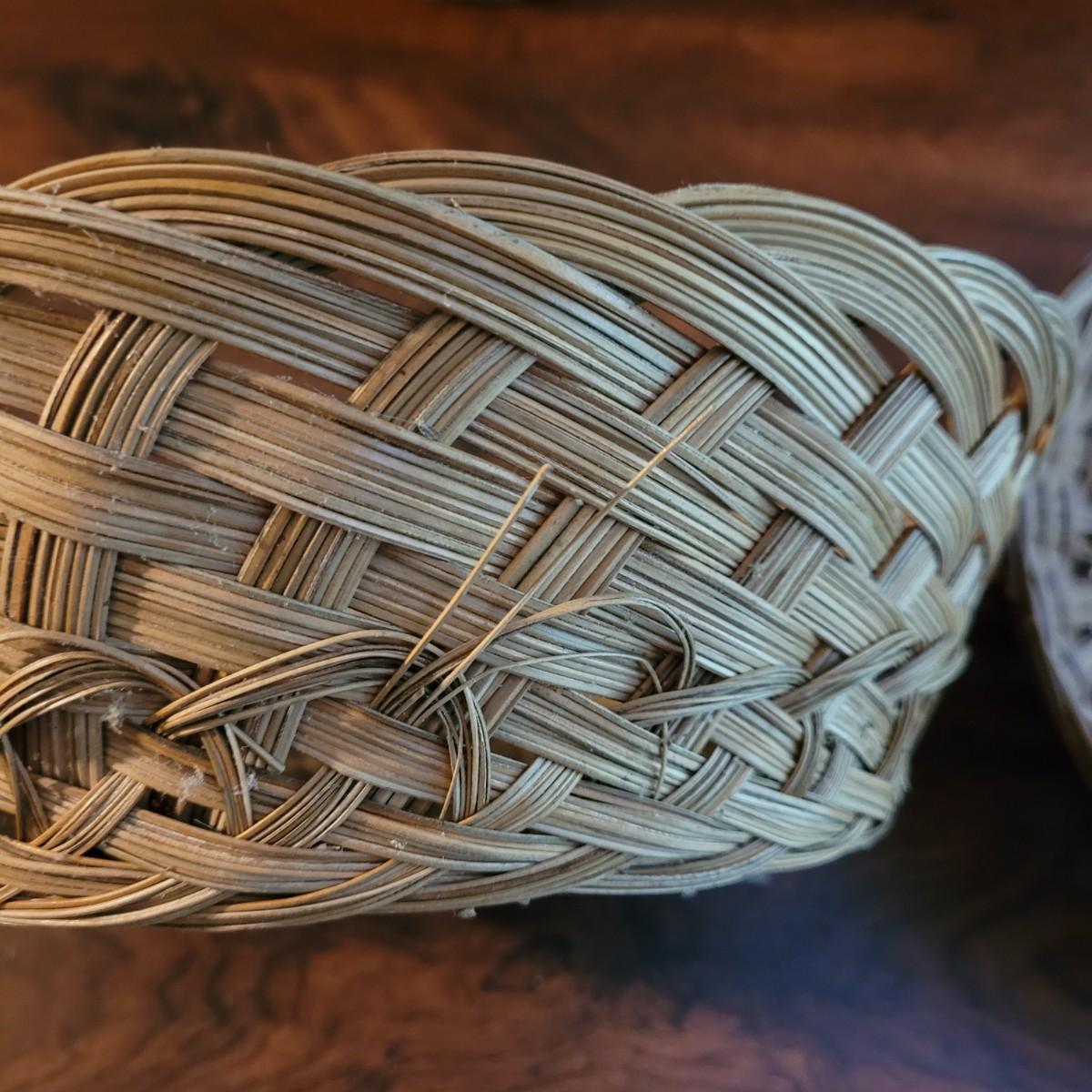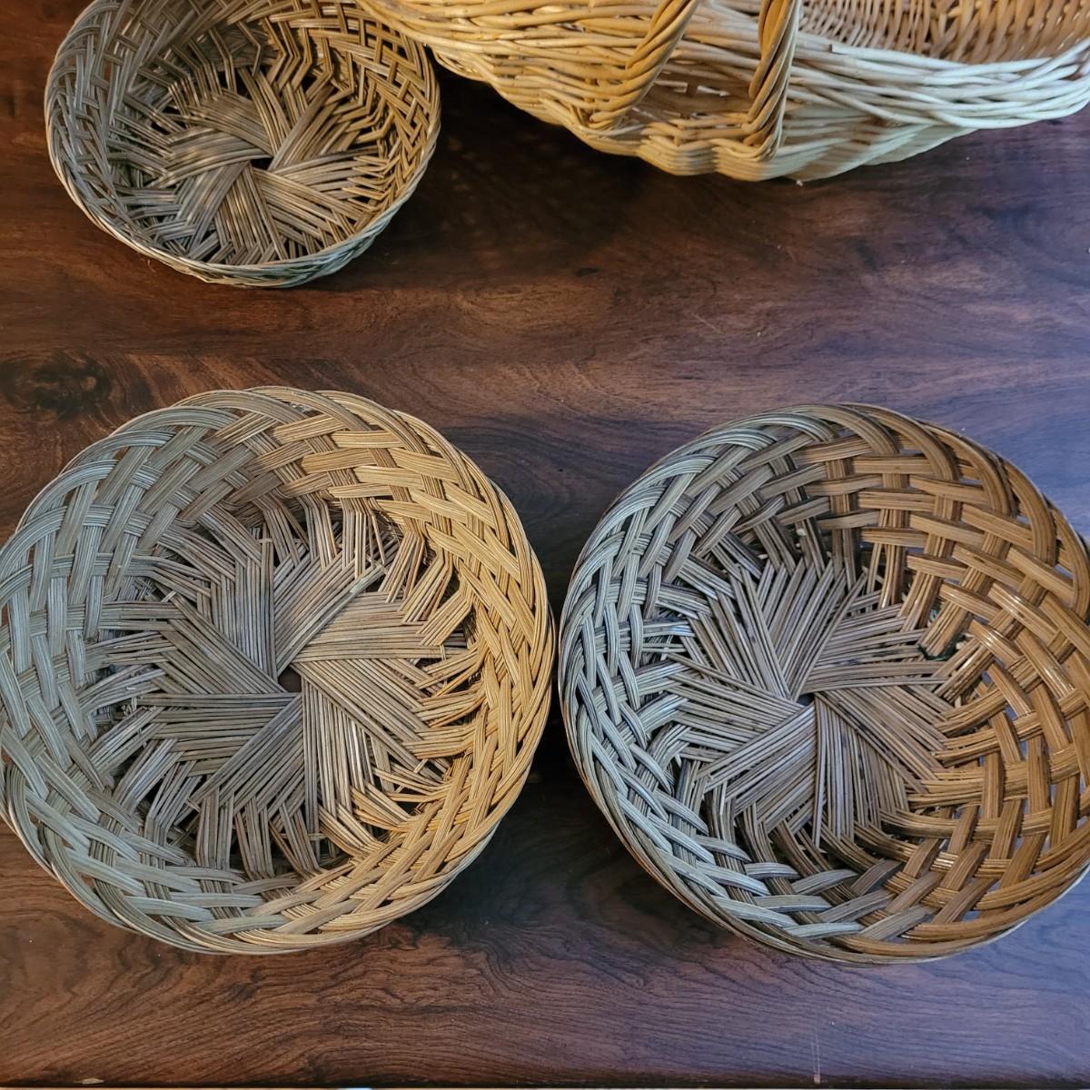 Collection of wide variety of woven baskets. In good condition with very few breaks in material (see photos for damaged areas). Basket with lid and handle appears to be from the well known palm grass baskets of Charleston, SC. Largest basket measures approximately 23.5"L x17"D x18"H. Shipping available.