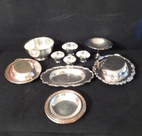 Collection One of Silver Plate Serving Dishes and Bowls
