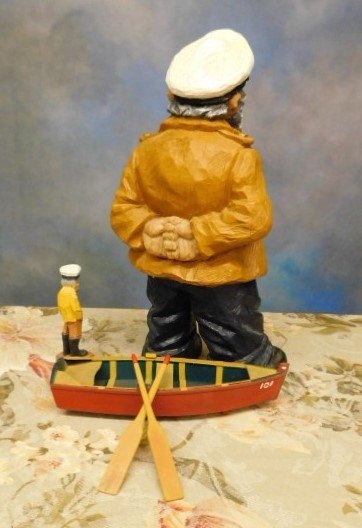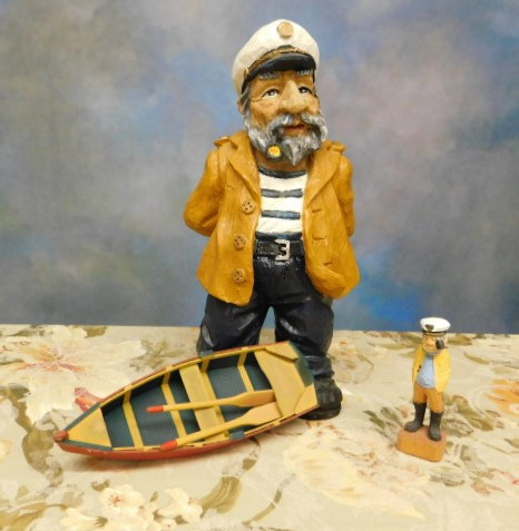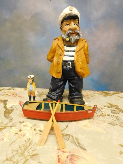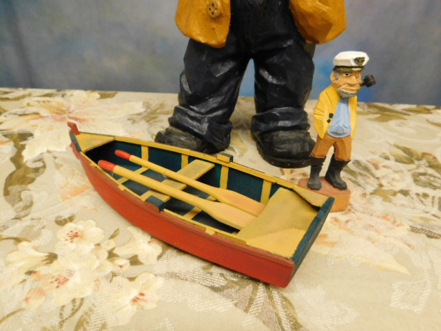 Collection Wood Carved Mariner Items  Sea Captains and Row Boat
