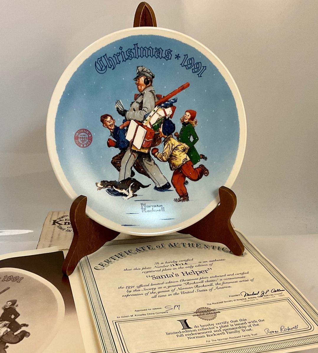 Norman Rockwell Christmas Collector Plate 1991 "Santa's Helper" Knowles limited edition