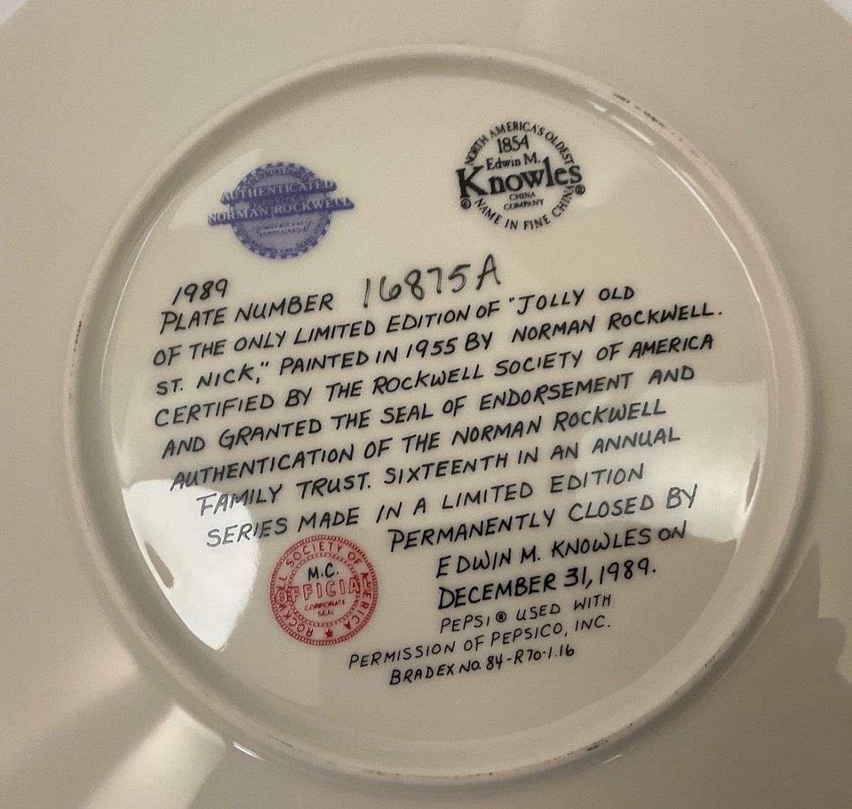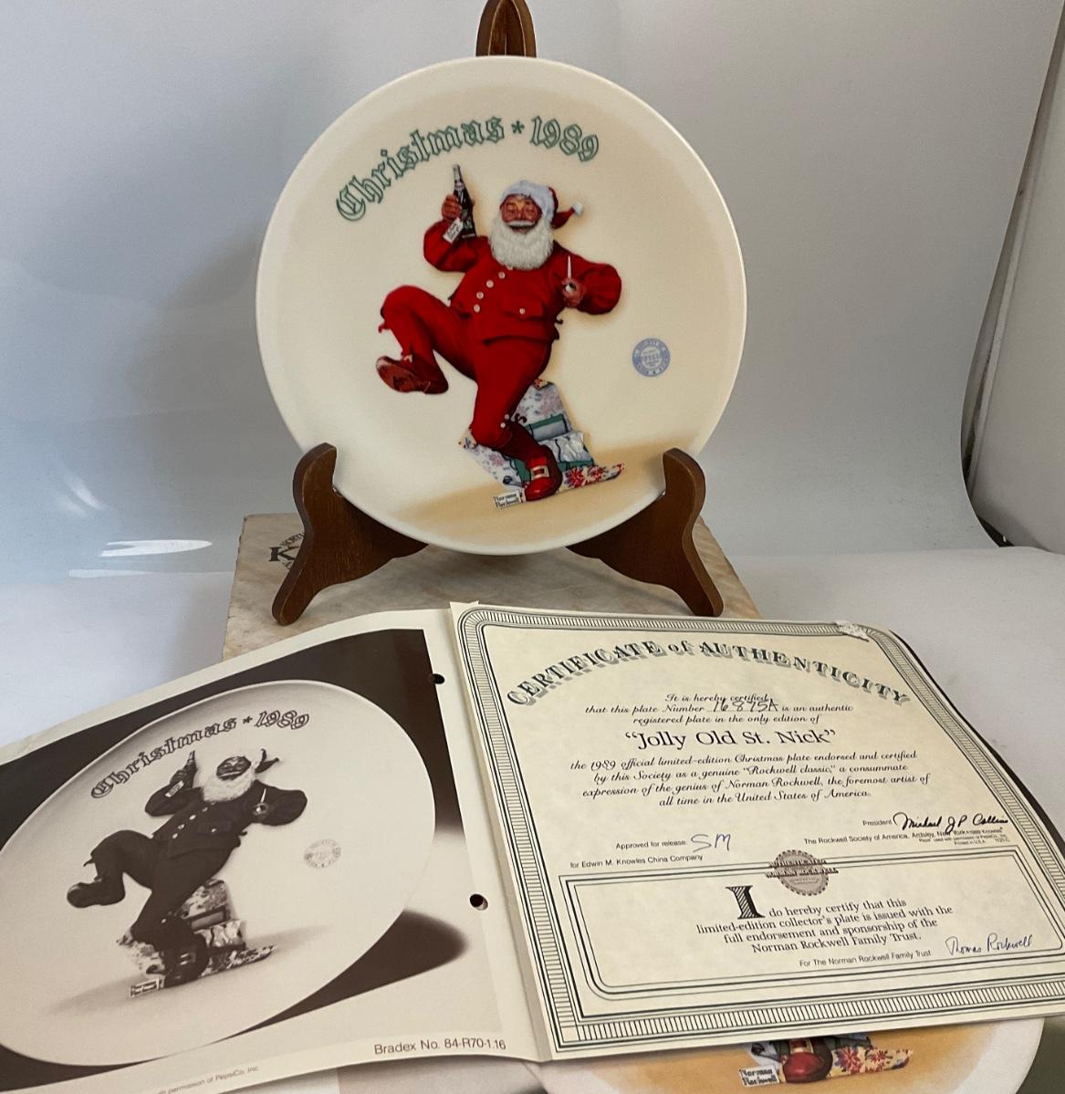 Norman Rockwell Christmas Collector Plate 1989 "Jolly Old St. Nick" Knowles limited edition