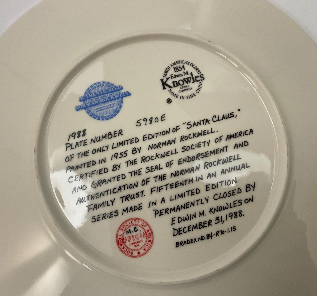 Vintage Norman Rockwell Santa Claus Christmas Holiday Collector Plate. In good condition.