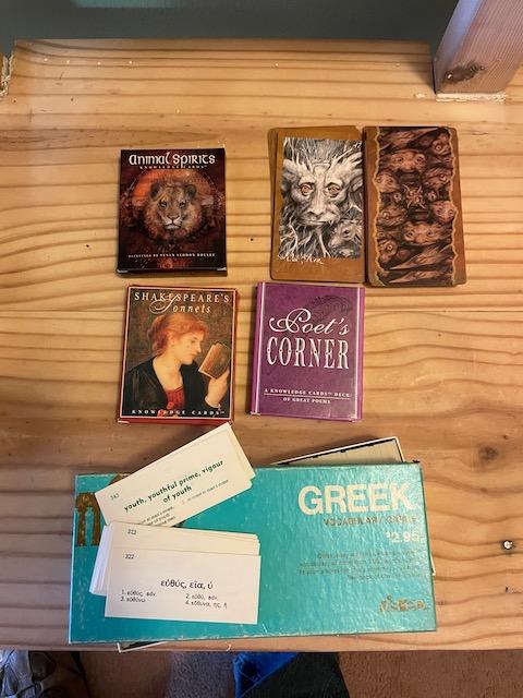 Collector cards - Flash cards - Greek flash cards - Shakespeare sonnet cards - animal sprit cards and more
