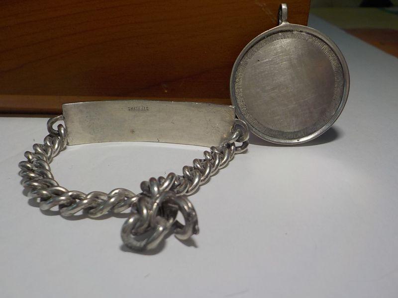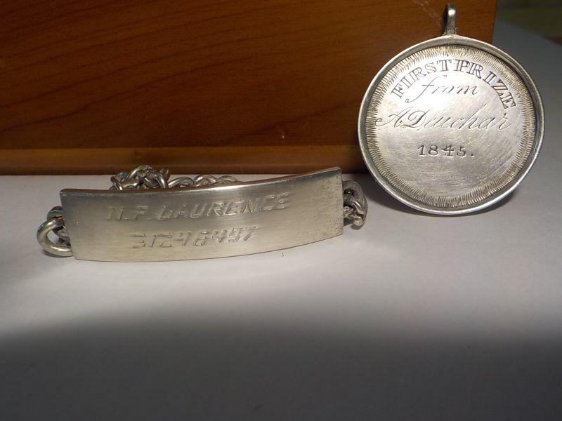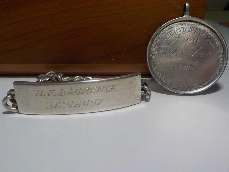 Collector First Prize 1848 medallion and Military WW2 ID bracelet.