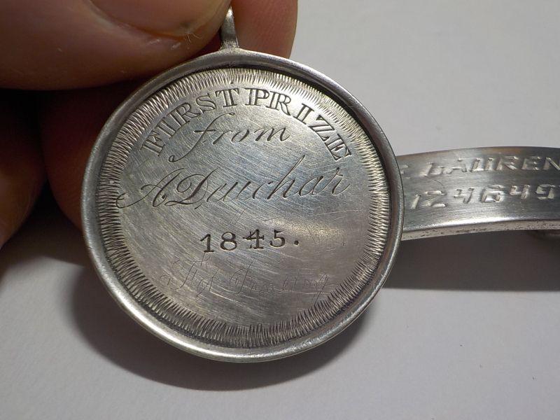 Medallion 1843 "First Prize" . Unknown military bracelet with military ID number.