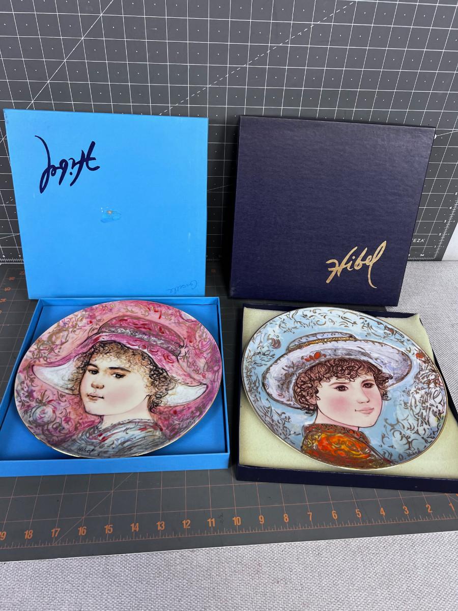 Collector Plates Hibel (2) Boy Todd & Girl with Hat