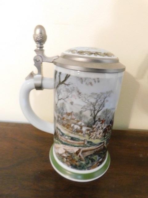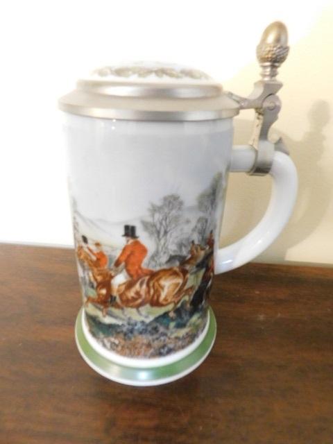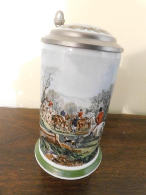 Collector Stein Franklin Porcelain Bavarian Hunter Scene