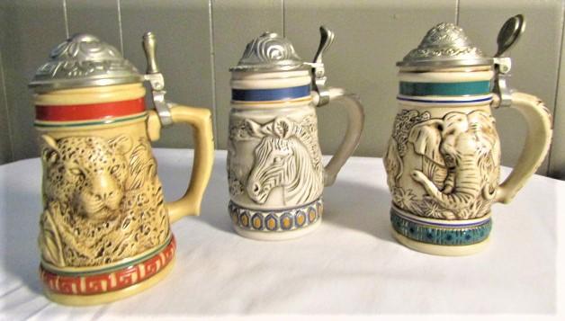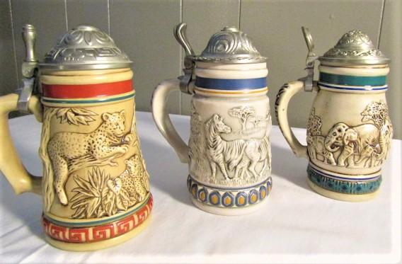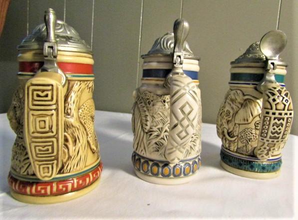 Collector Steins Tribute to Endangered Species Jaguar, Mountain Zebra, and Asian Elephant