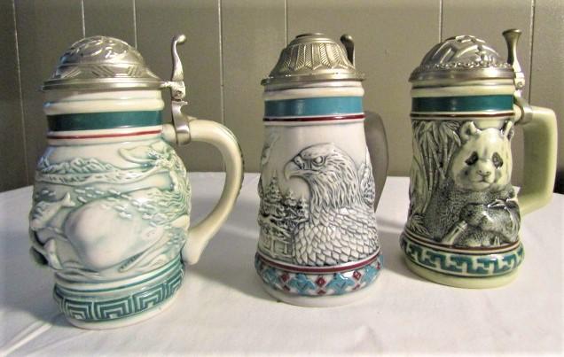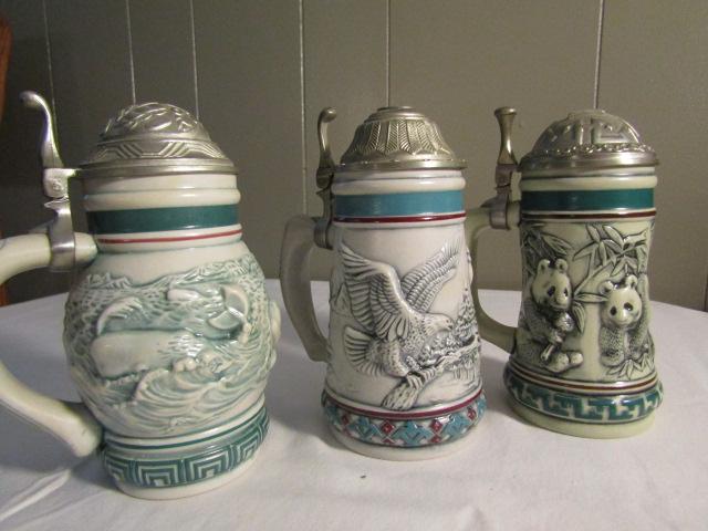 Collector Steins Tribute to Endangered Species Sperm Whale, Bald Eagle, Giant Panda