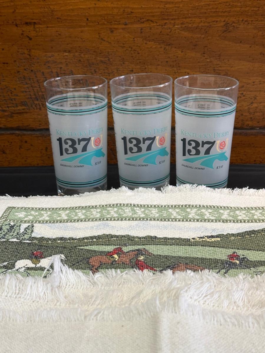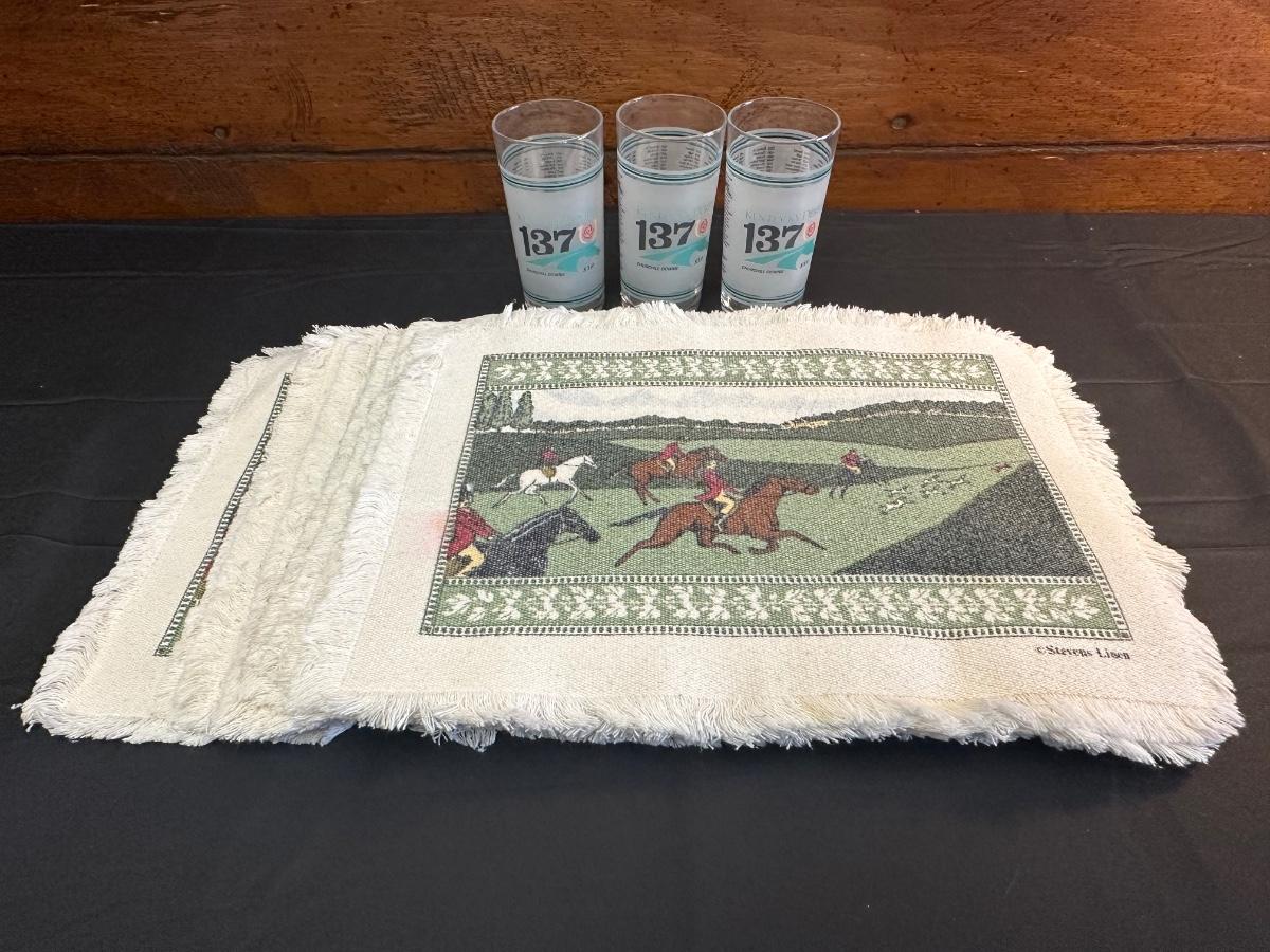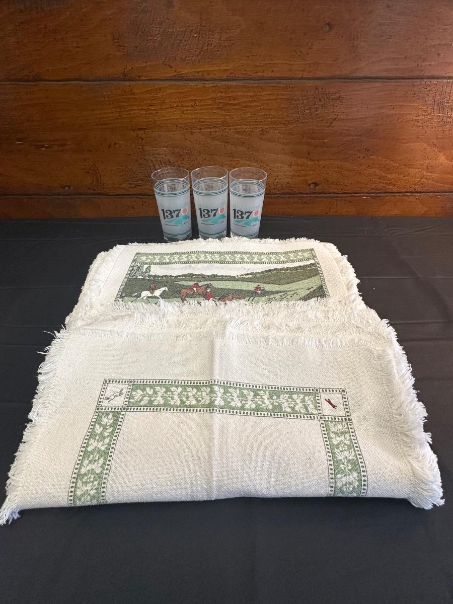 Collectors Glasses from The Kentucky Derby, Linen Placemats & Napkins