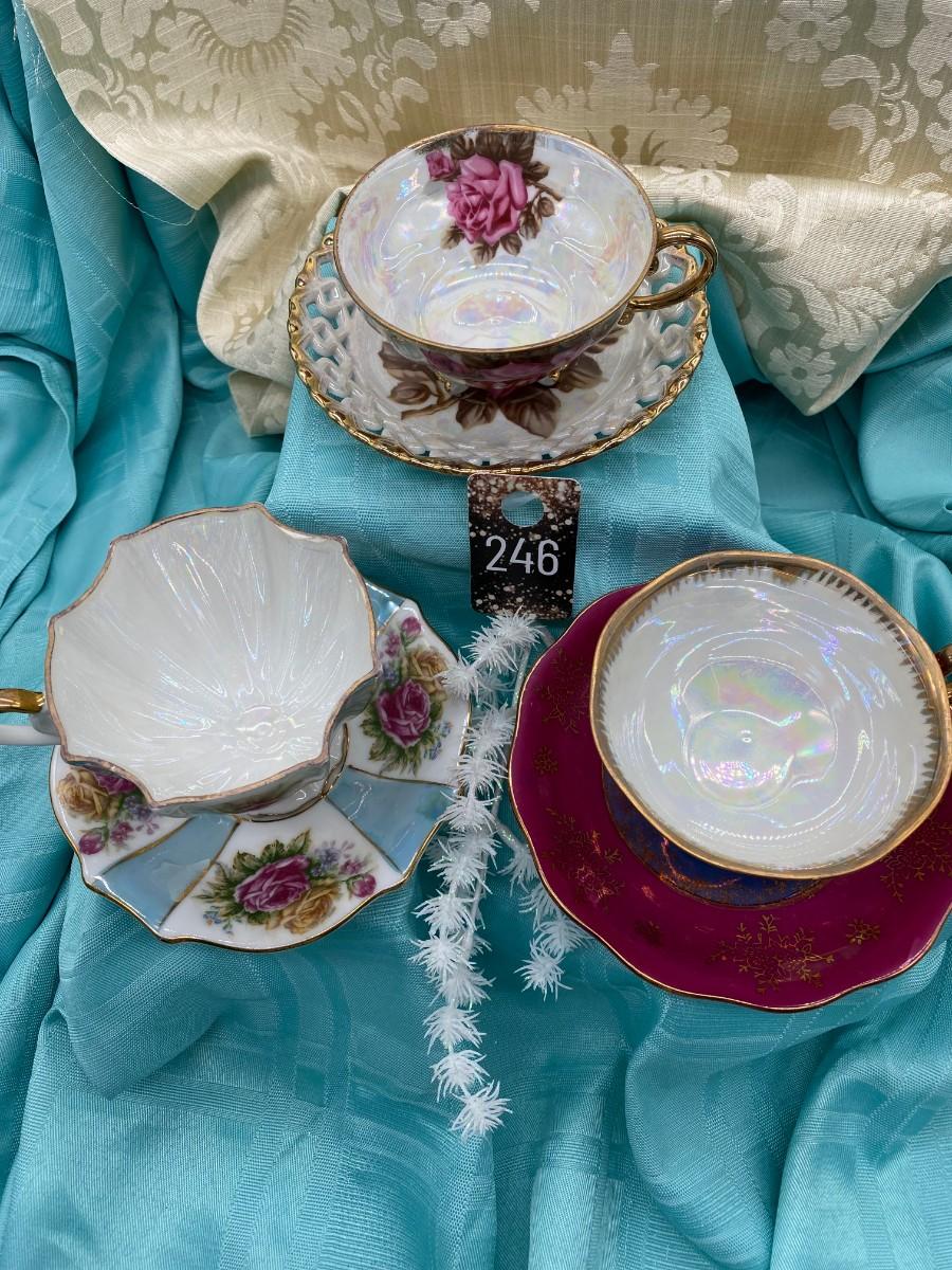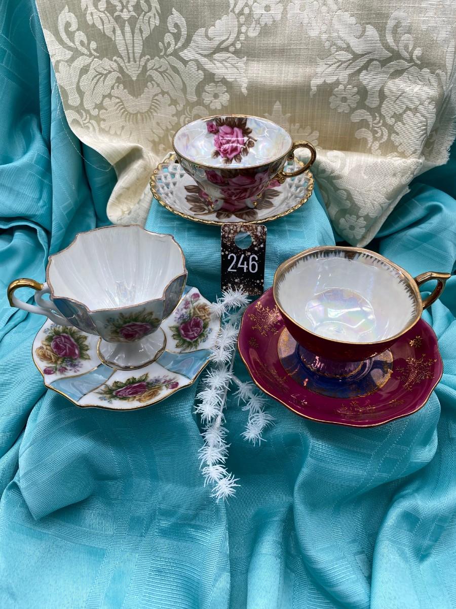 3 beautiful collectors tea cups with matching saucers, all in excellent condition.