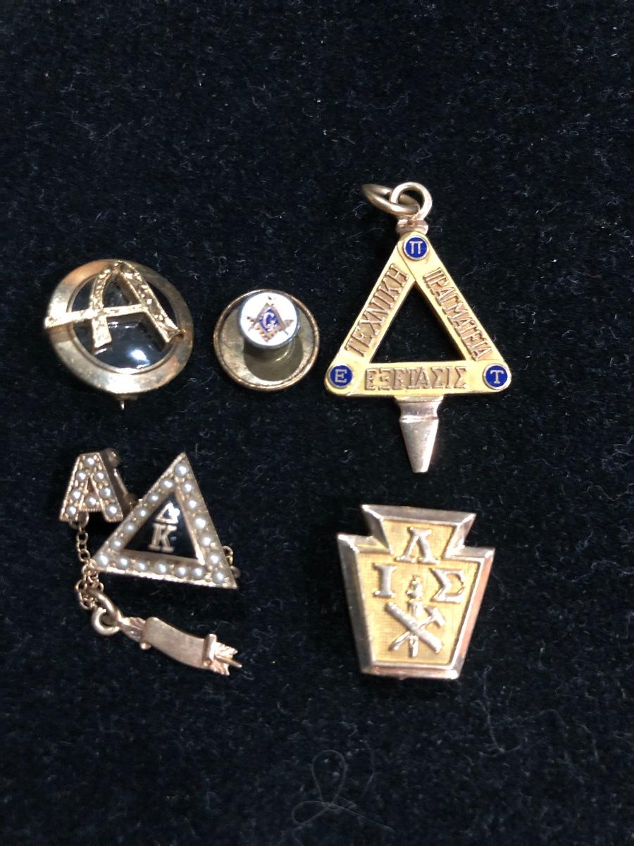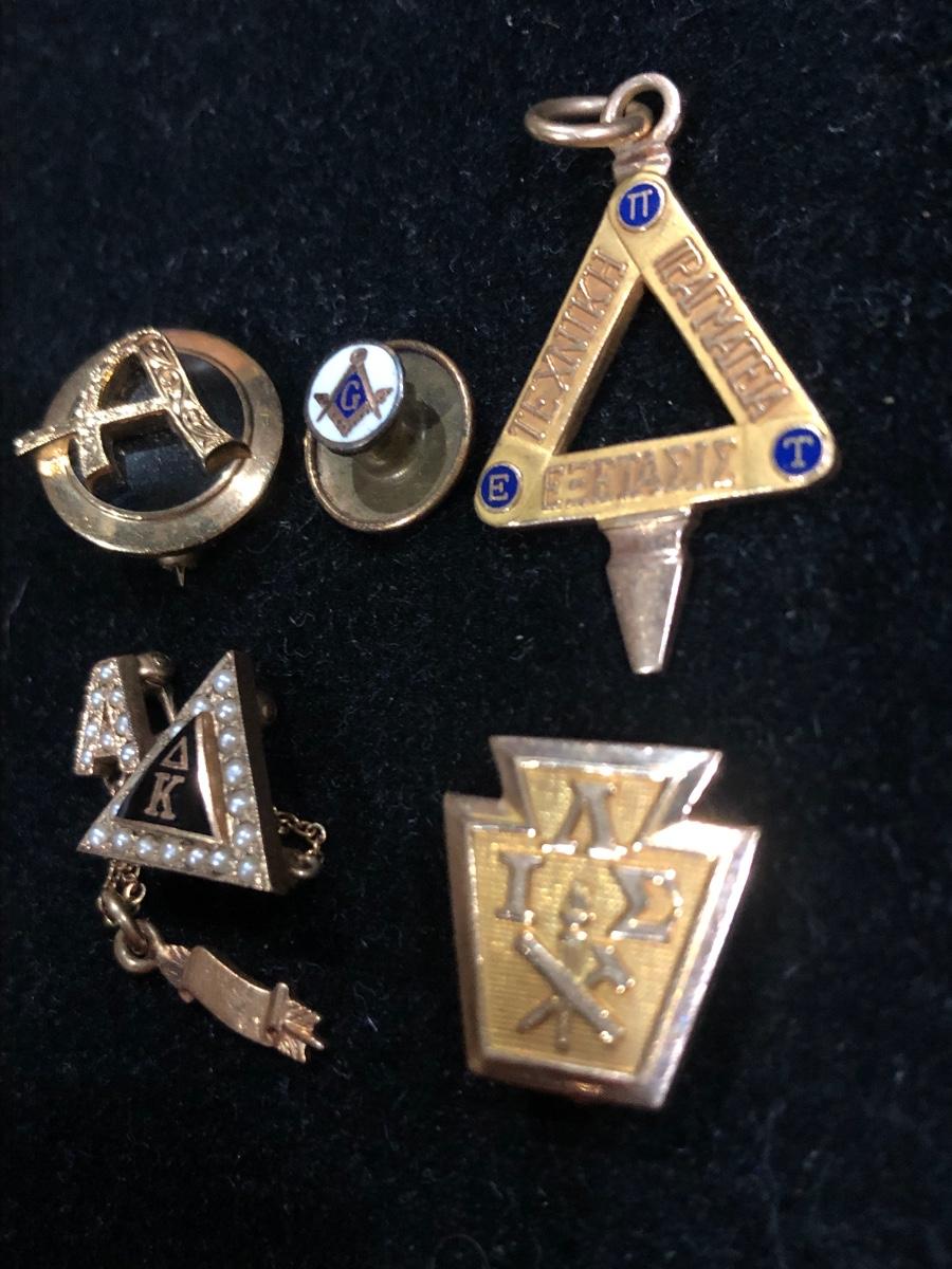 College Charm, & Other Misc. Pins (some marked 10K) -Lot 120