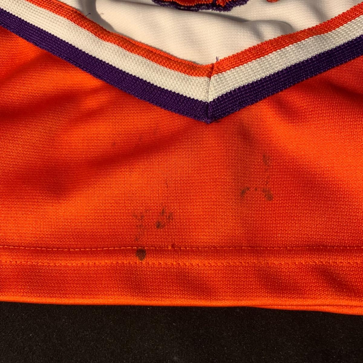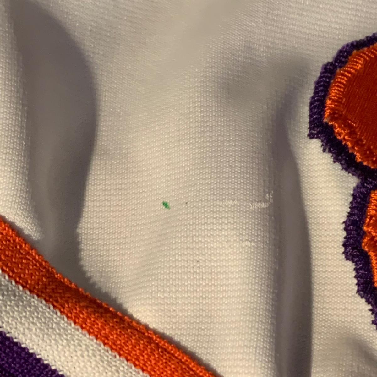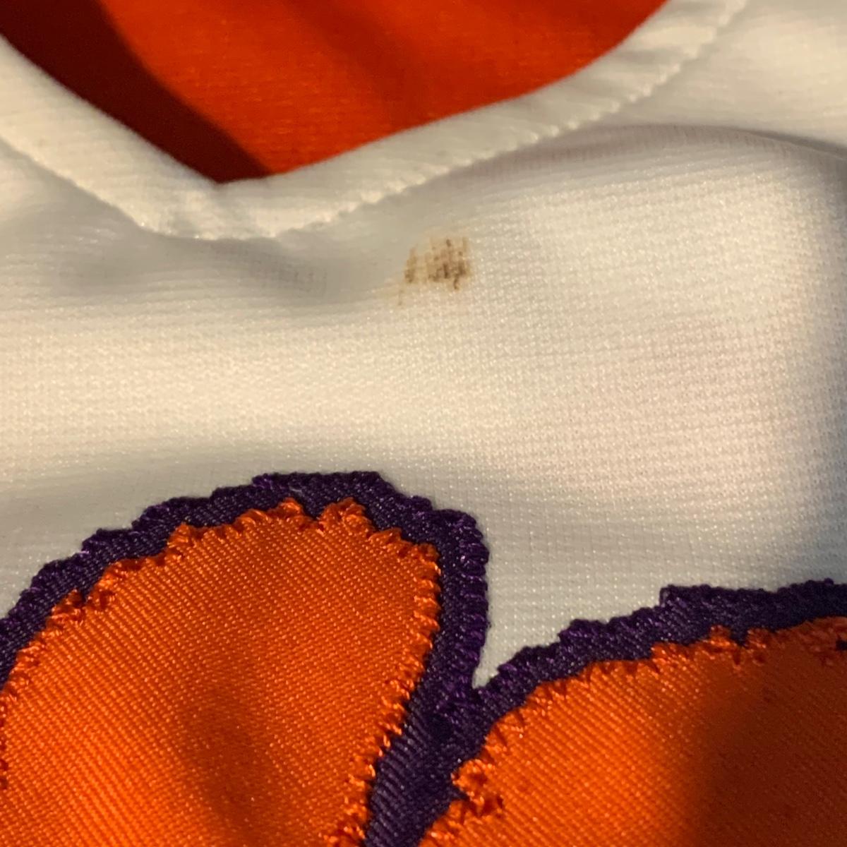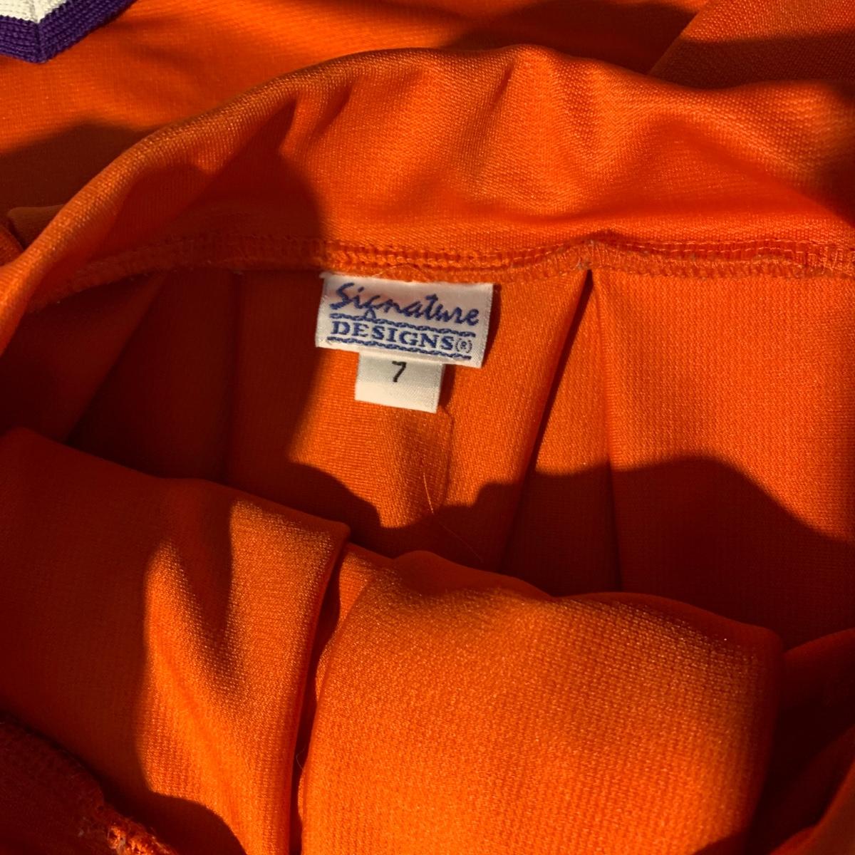 This lot includes college and high school apparel including a sweatshirt, two shirts, a varsity sweater, and a kids Clemson cheerleading costume. The sweatshirt is a youth Large and the tops and sweater appear to fit a size Medium to Large. The lot also includes stickers, pins, and patches. The cheerleading outfit fits a child’s 7. The tops have some small stains on them. Shipping available.
