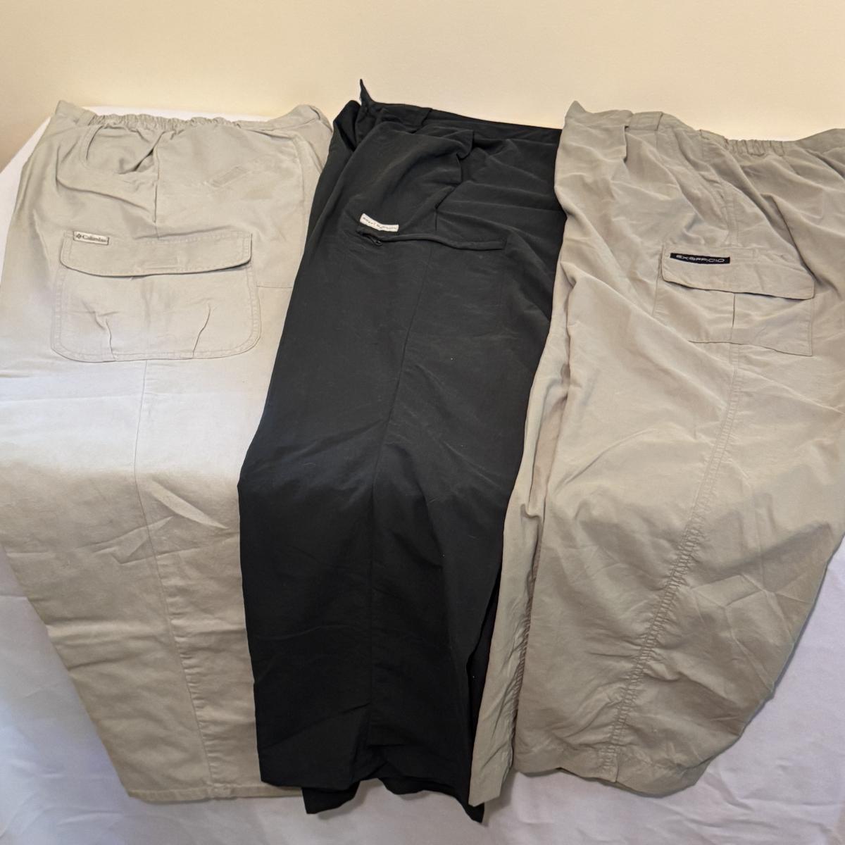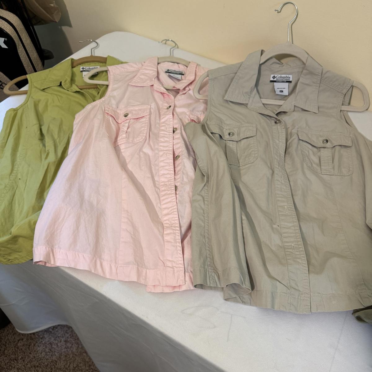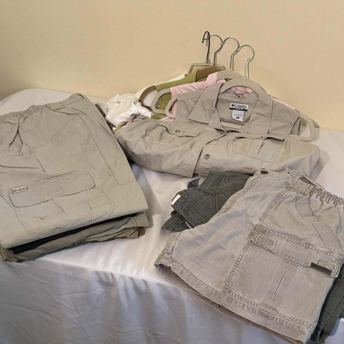 Shirts, shorts, and sweaters by the top names in outdoor clothing, Colombia, Ex Officio and Royal Robbins. Most sizes are M-L. Two of the sleeveless shirts are XL. Shipping available.