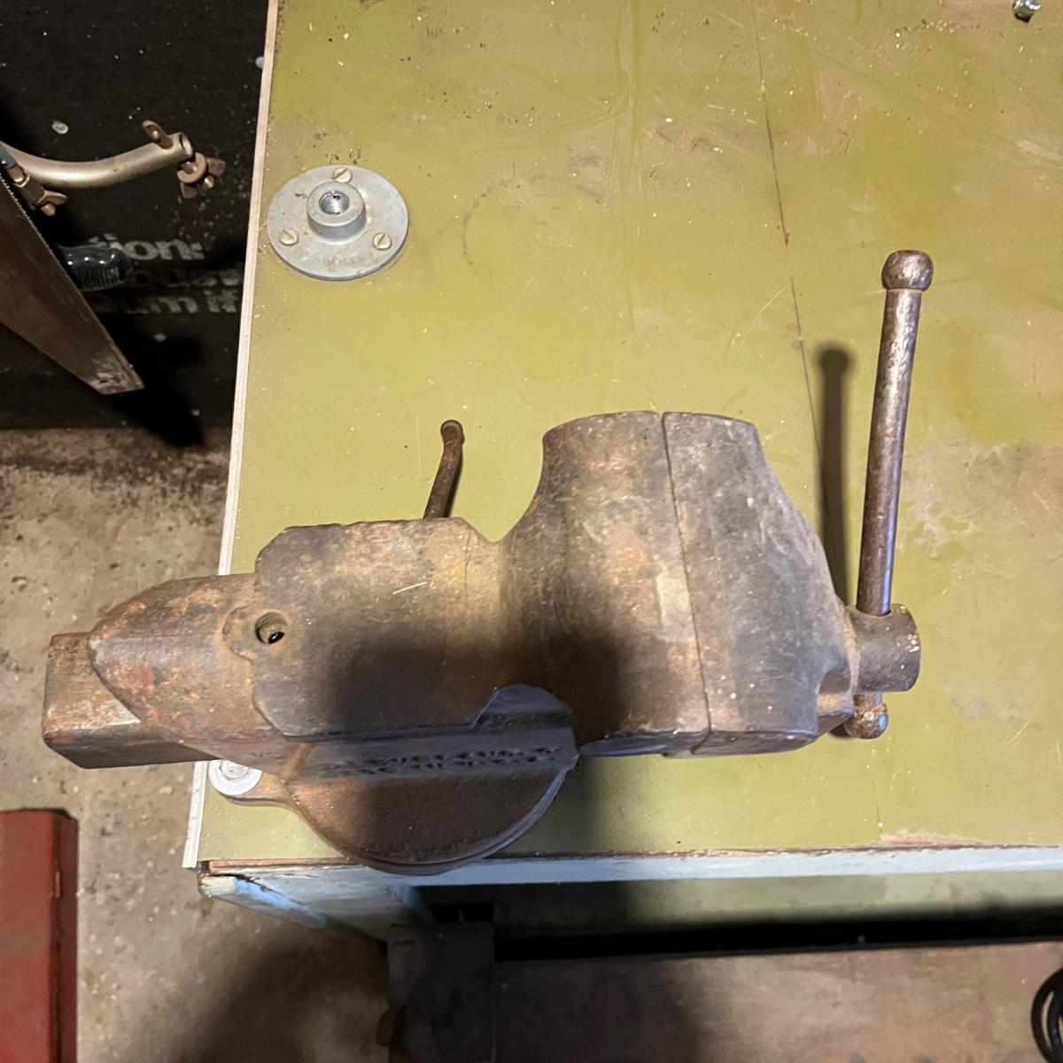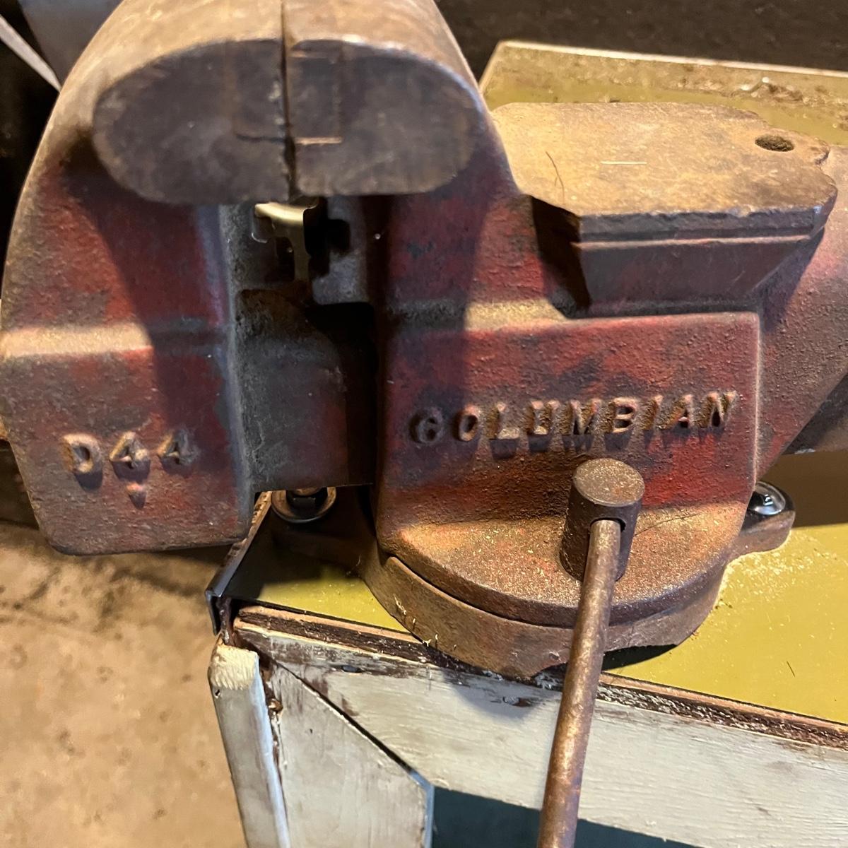 Lot includes a Columbian 4” vise model # D-44. Winning bidder will need to remove vise from bench. Vise measures 5” x 13” x 7” when closed.