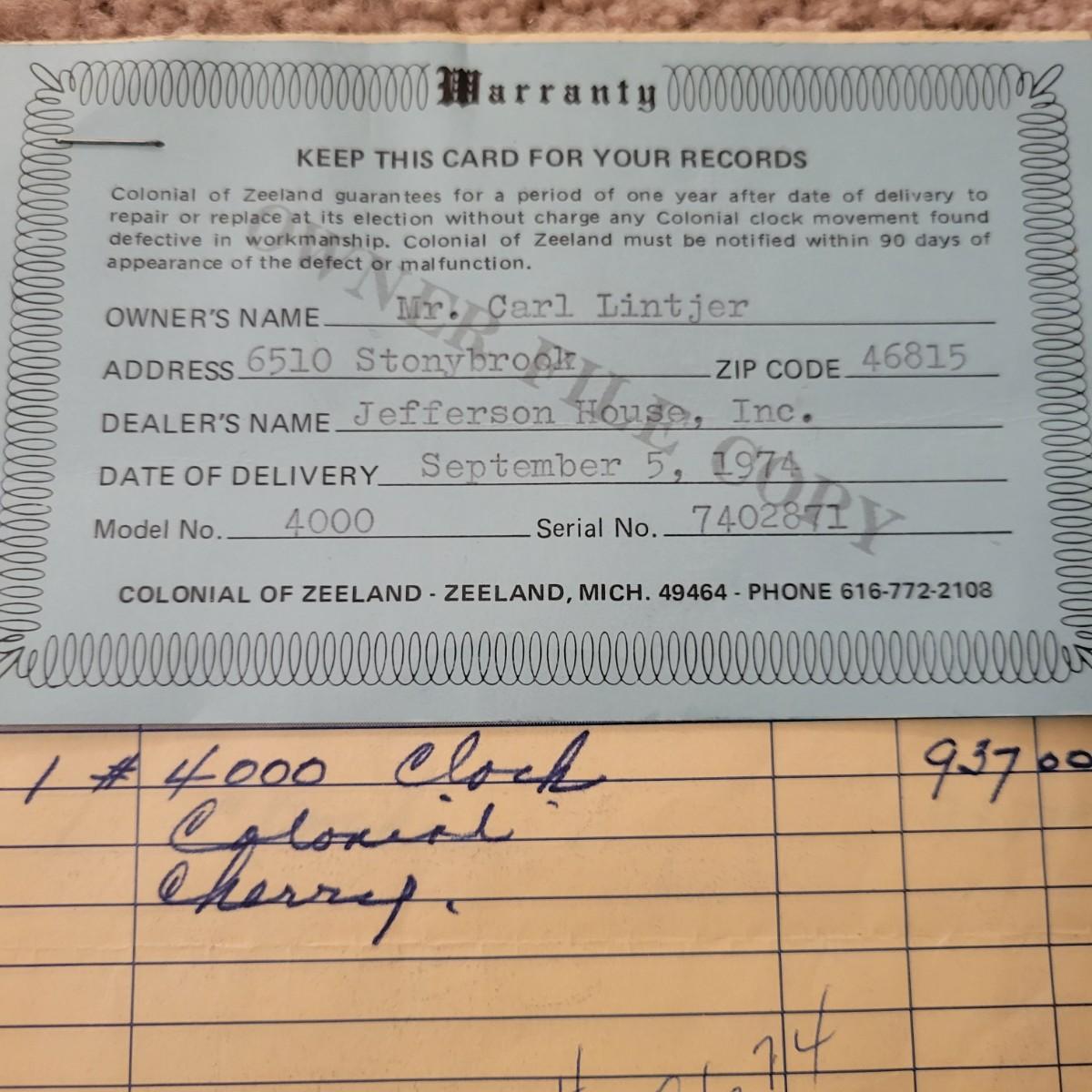Colonial of Zeeland Grandfather Clock (LR-DW)