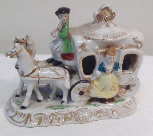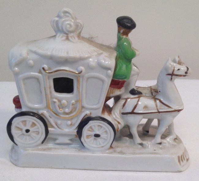 Colonial Japan horse and carriage figurine. Material: Porcelain. Measurement appproximate: 5 x 6Inches. Shipping cost: $17.00 excluding Hawaii, Alaska & California