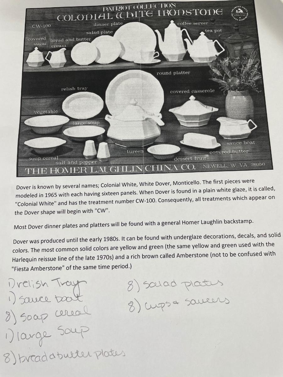 Colonial White Ironstone china