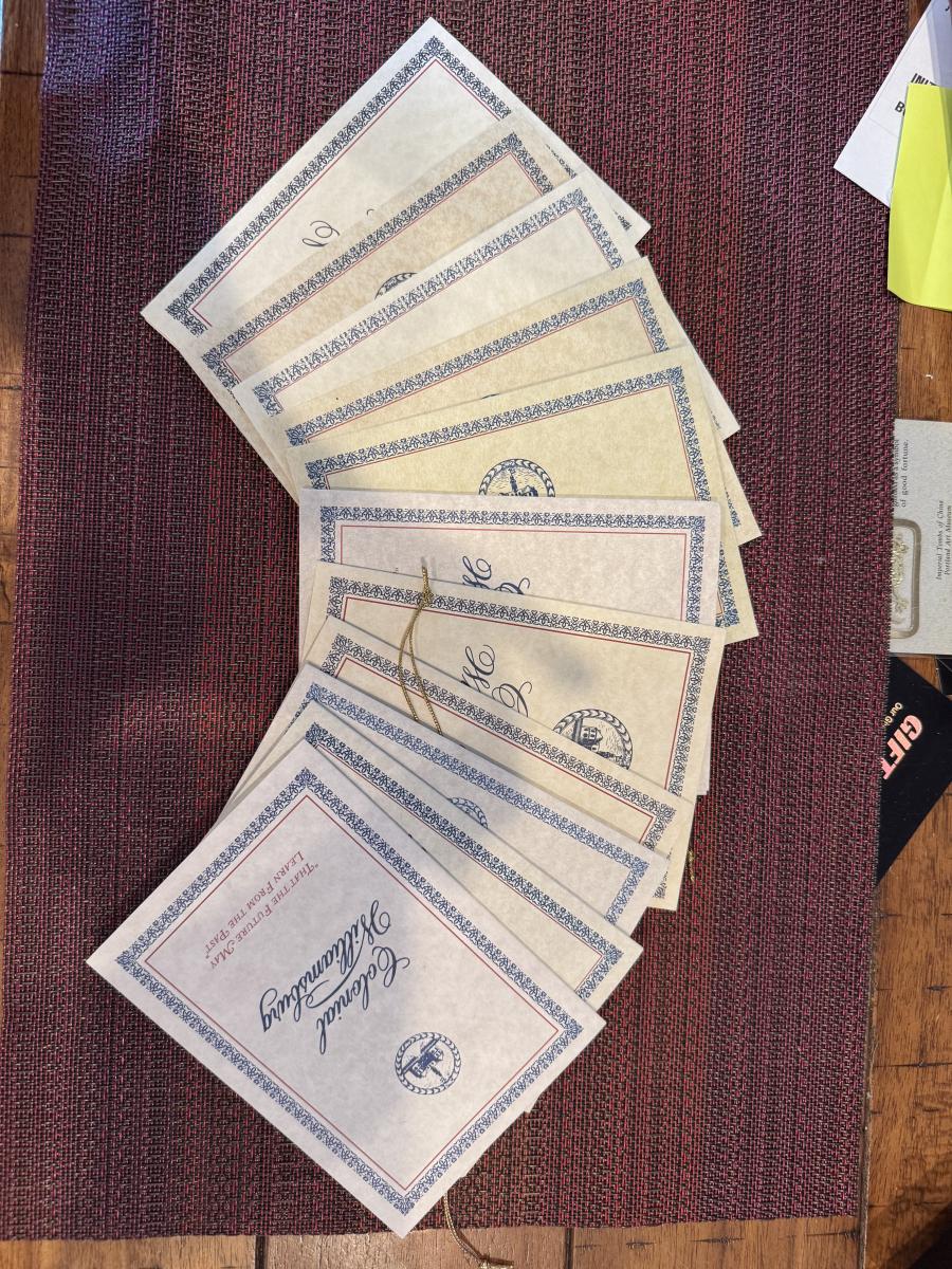 Colonial Williamsburg VA Ornaments. All in envelopes. Gold color. Lot of 11.