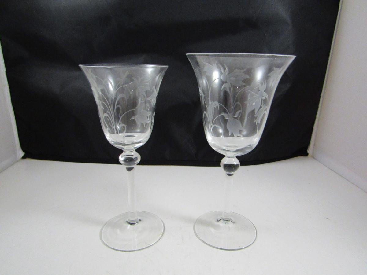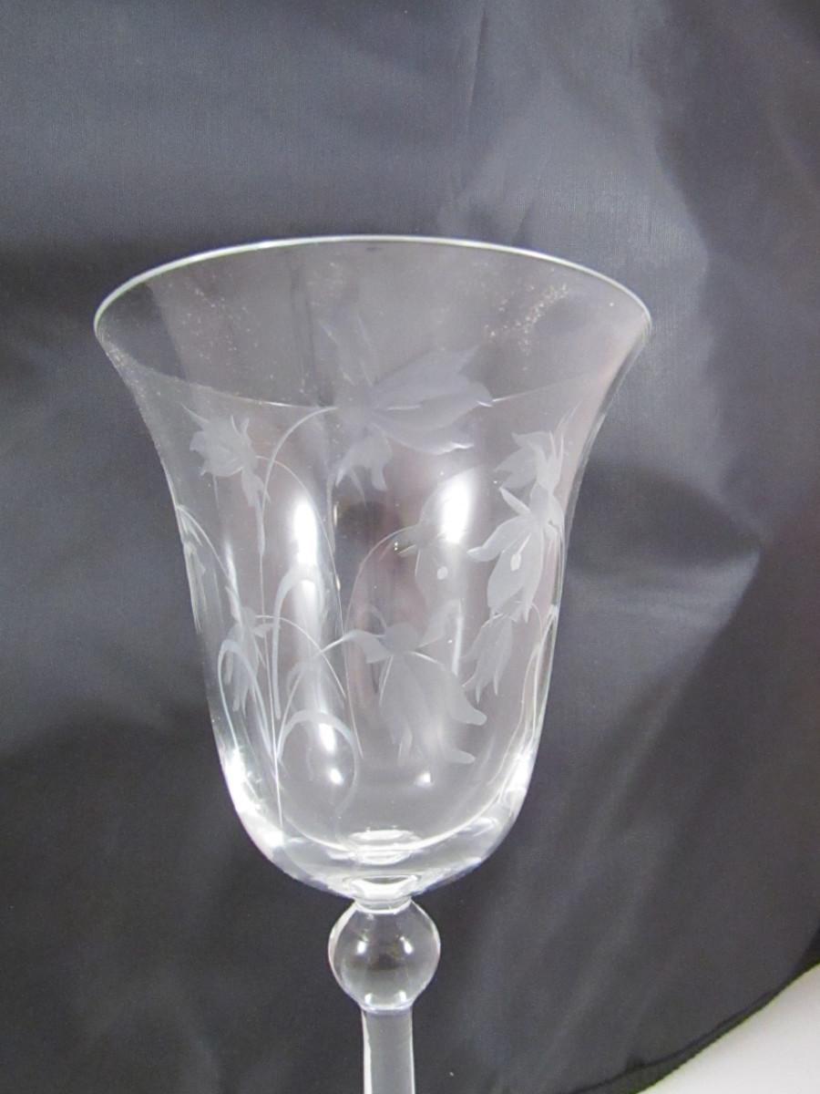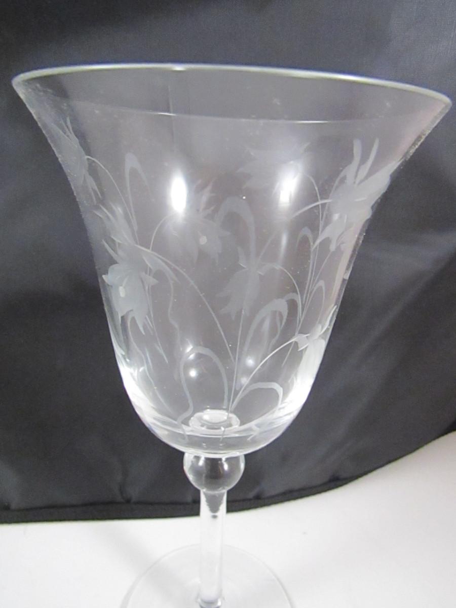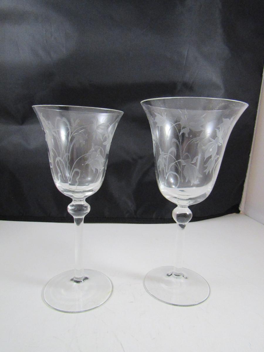 Colony Crystal Glasses 'Lily of the Valley' Pattern- 14 Pieces. Wine glass (7 1/4")- 10 pcs. Water glass (7 3/4")- 4 pcs.