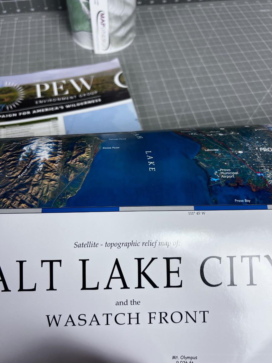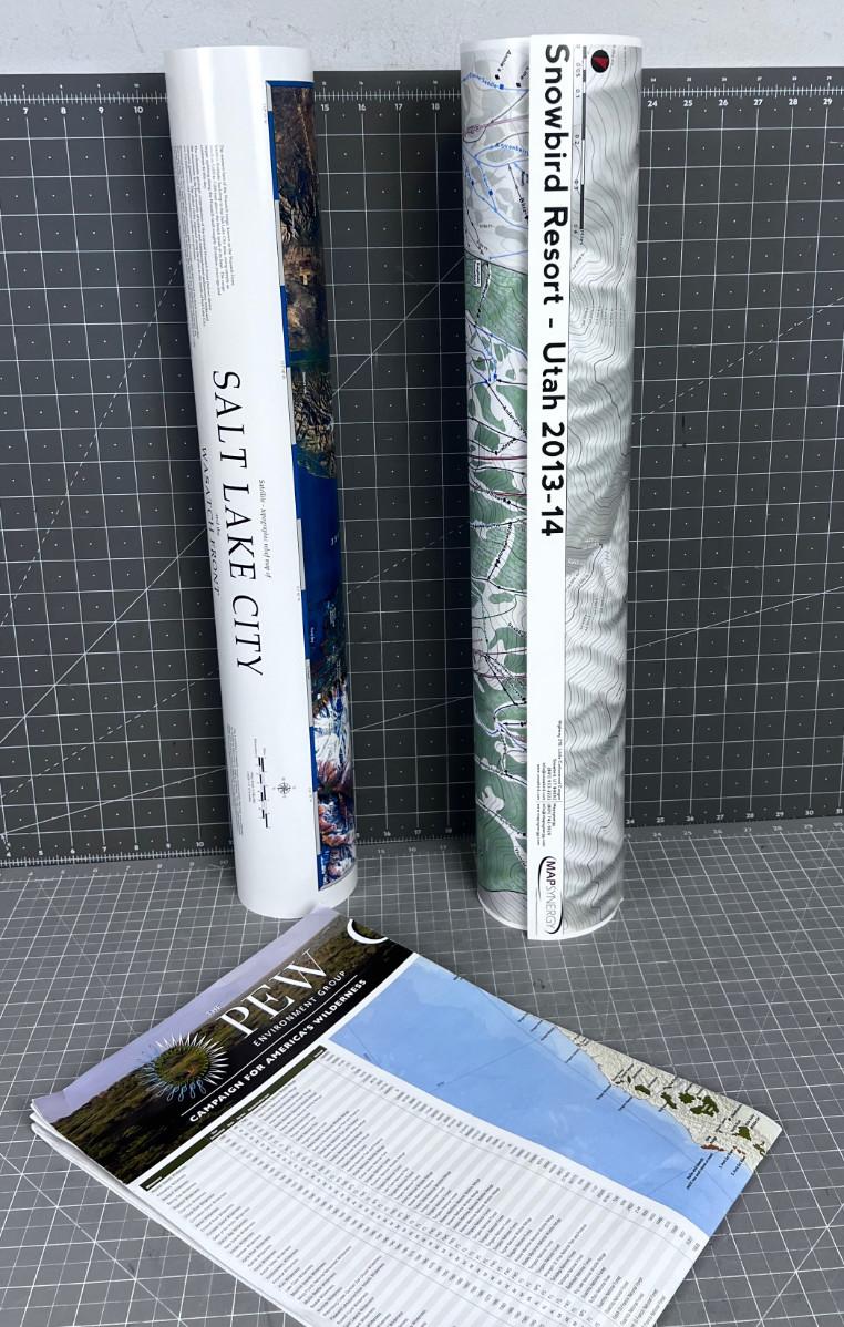 Color Arial of Salt Lake City, Snow Bird Resort and a Wilderness Map