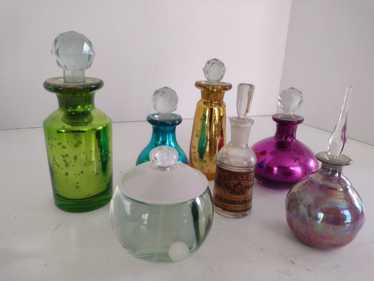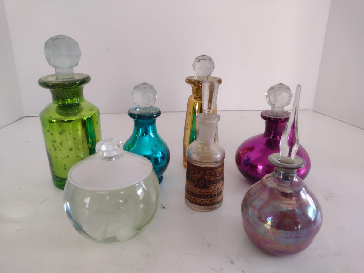Color Glass and Pottery Perfume Bottles
