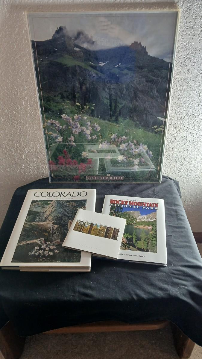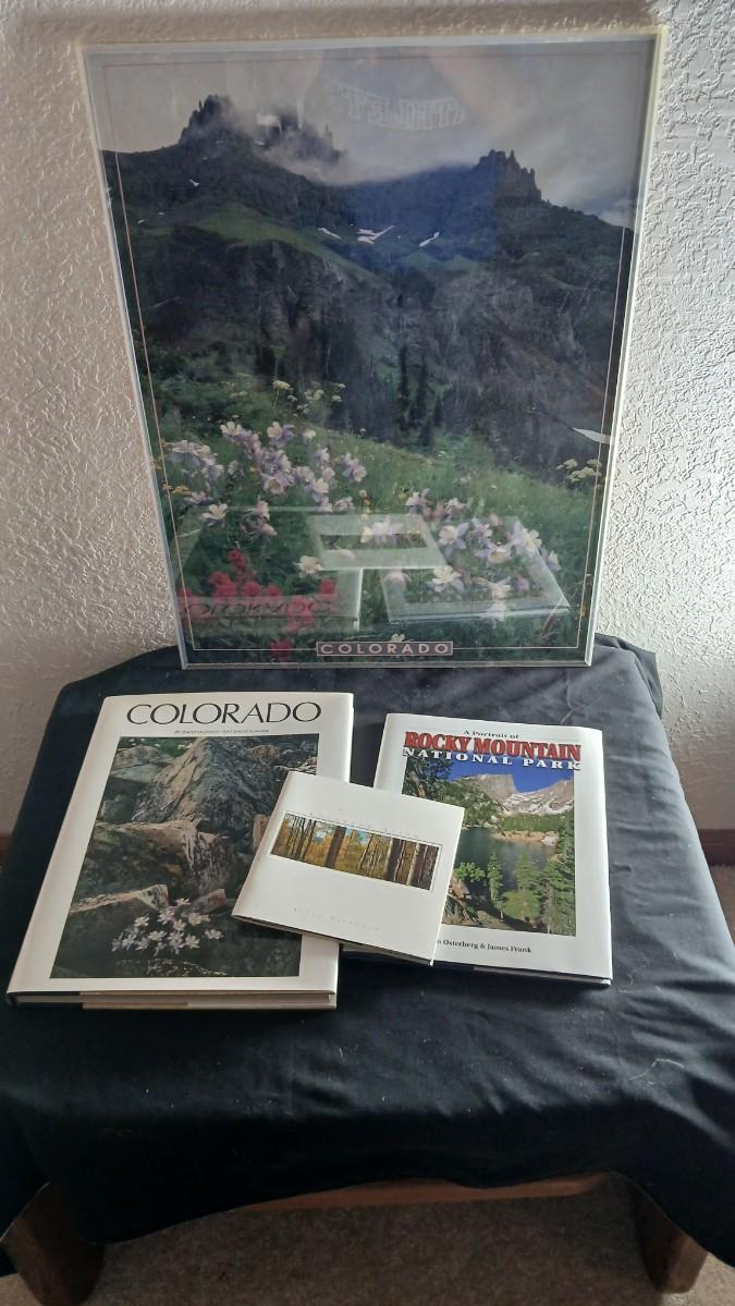 Colorado framed poster with two Colorado coffee table Oversized hardback books