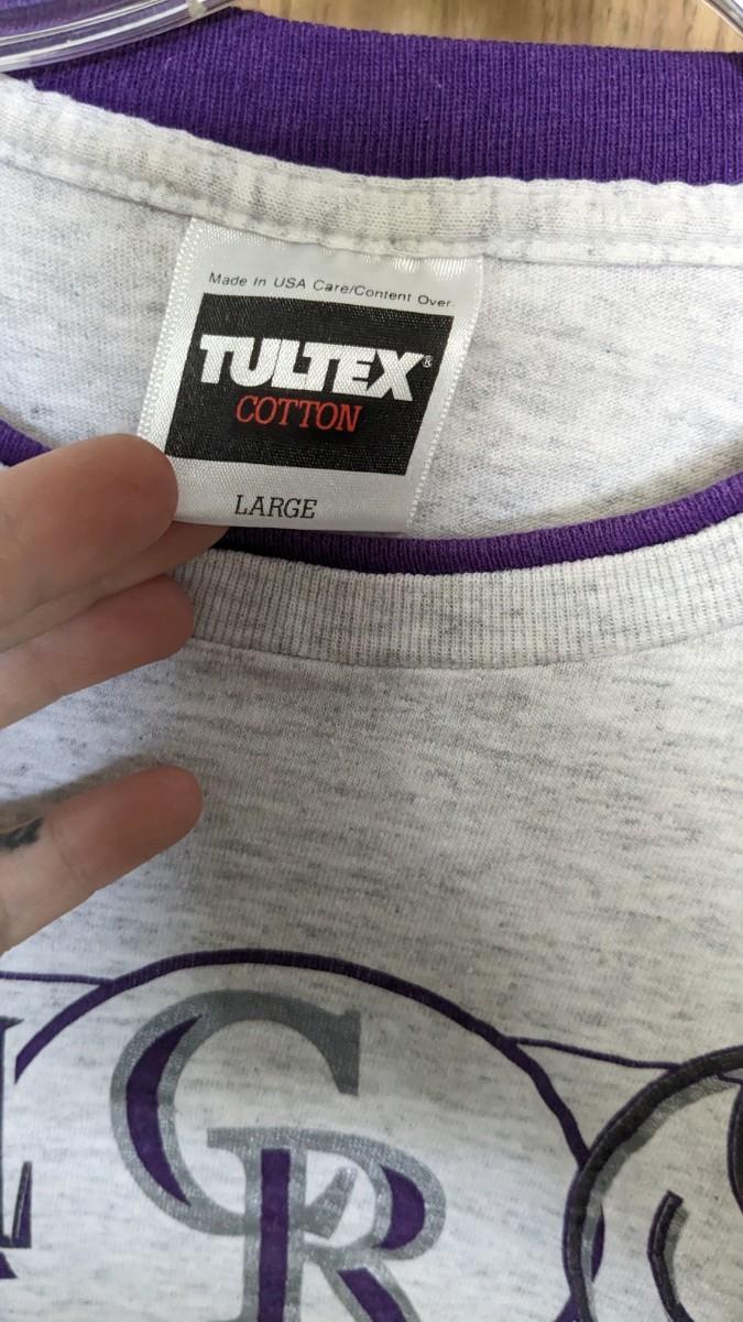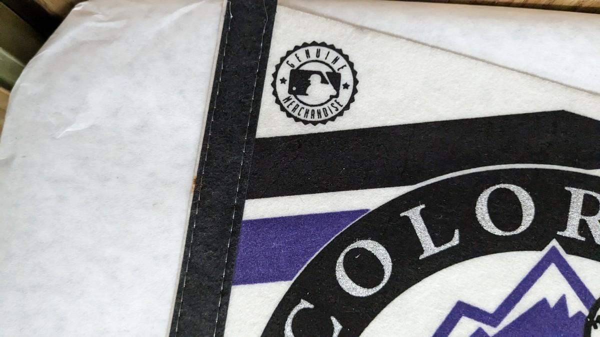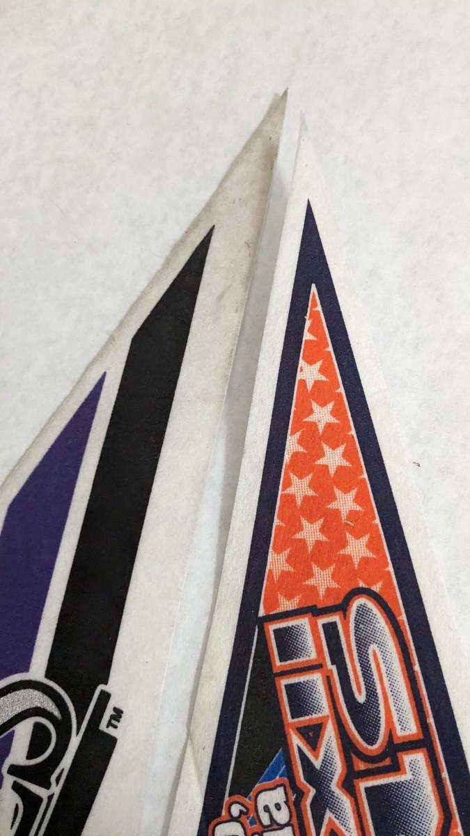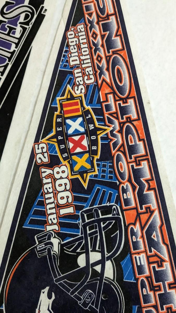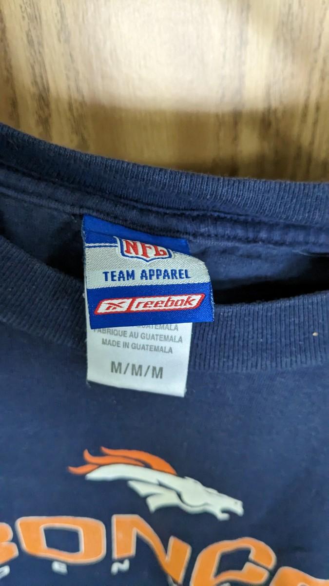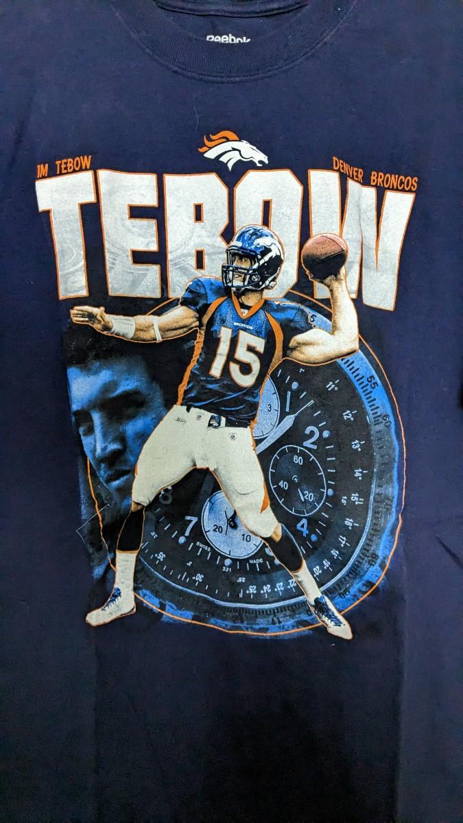 6 Broncos shirts, 2 from the 50th Super Bowl and the Broncos championship (L&XL), 2 Peyton Manning shirts(both XL), 1 Tim Tebow shirt (XL), and a Reebok/NFL shirt (M). Also includes 2 pennants, one from January 1998, the 32nd Super Bowl and a SIGNED Rockies pennant as well as inaugural Rockies shirt (L), note light staining on bottom of this piece. Fun multi decade lot. bdrm2