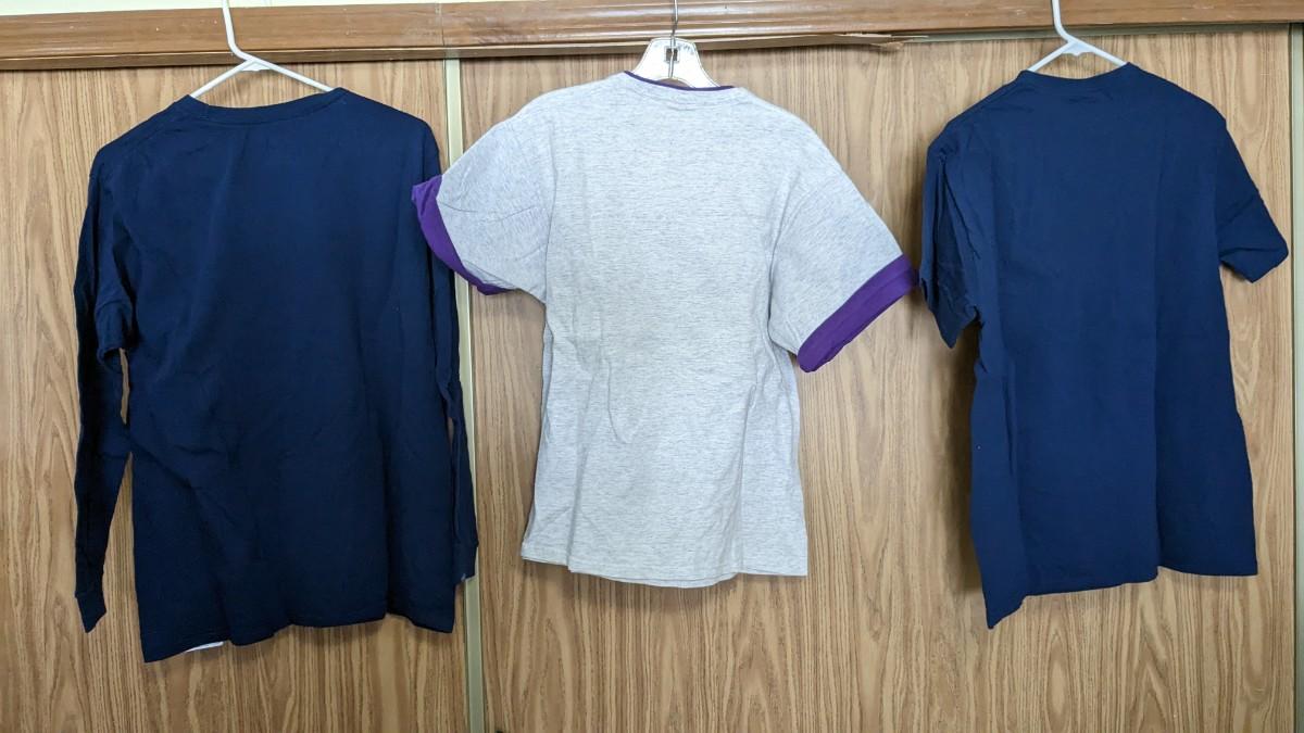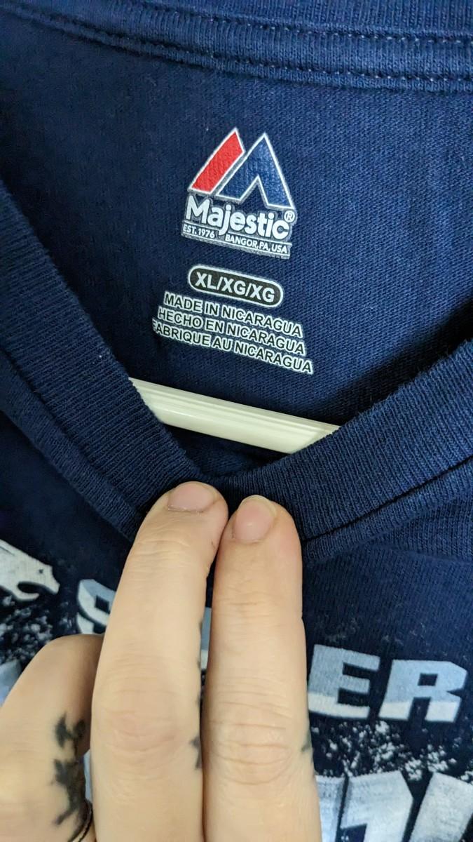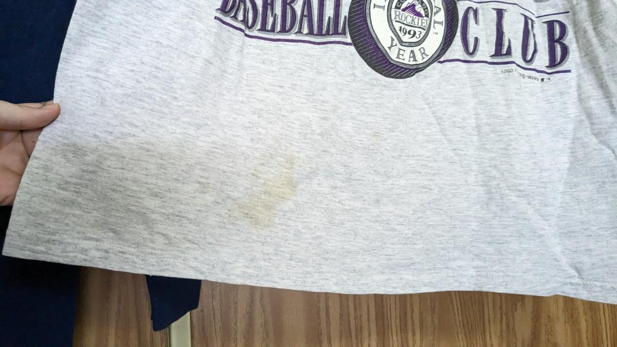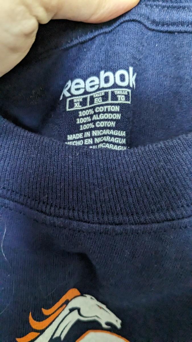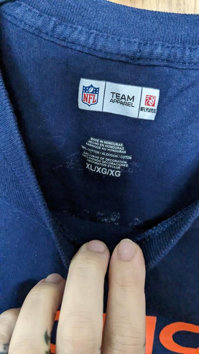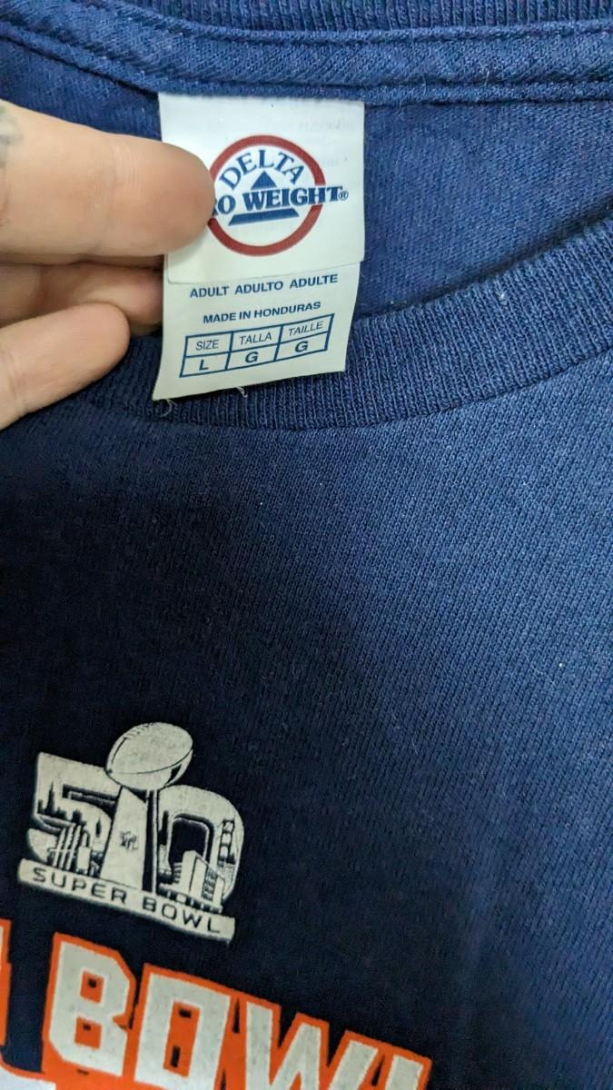 6 Broncos shirts, 2 from the 50th Super Bowl and the Broncos championship (L&XL), 2 Peyton Manning shirts(both XL), 1 Tim Tebow shirt (XL), and a Reebok/NFL shirt (M). Also includes 2 pennants, one from January 1998, the 32nd Super Bowl and a SIGNED Rockies pennant as well as inaugural Rockies shirt (L), note light staining on bottom of this piece. Fun multi decade lot. bdrm2