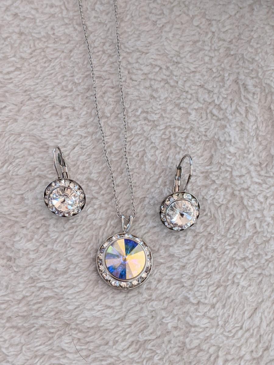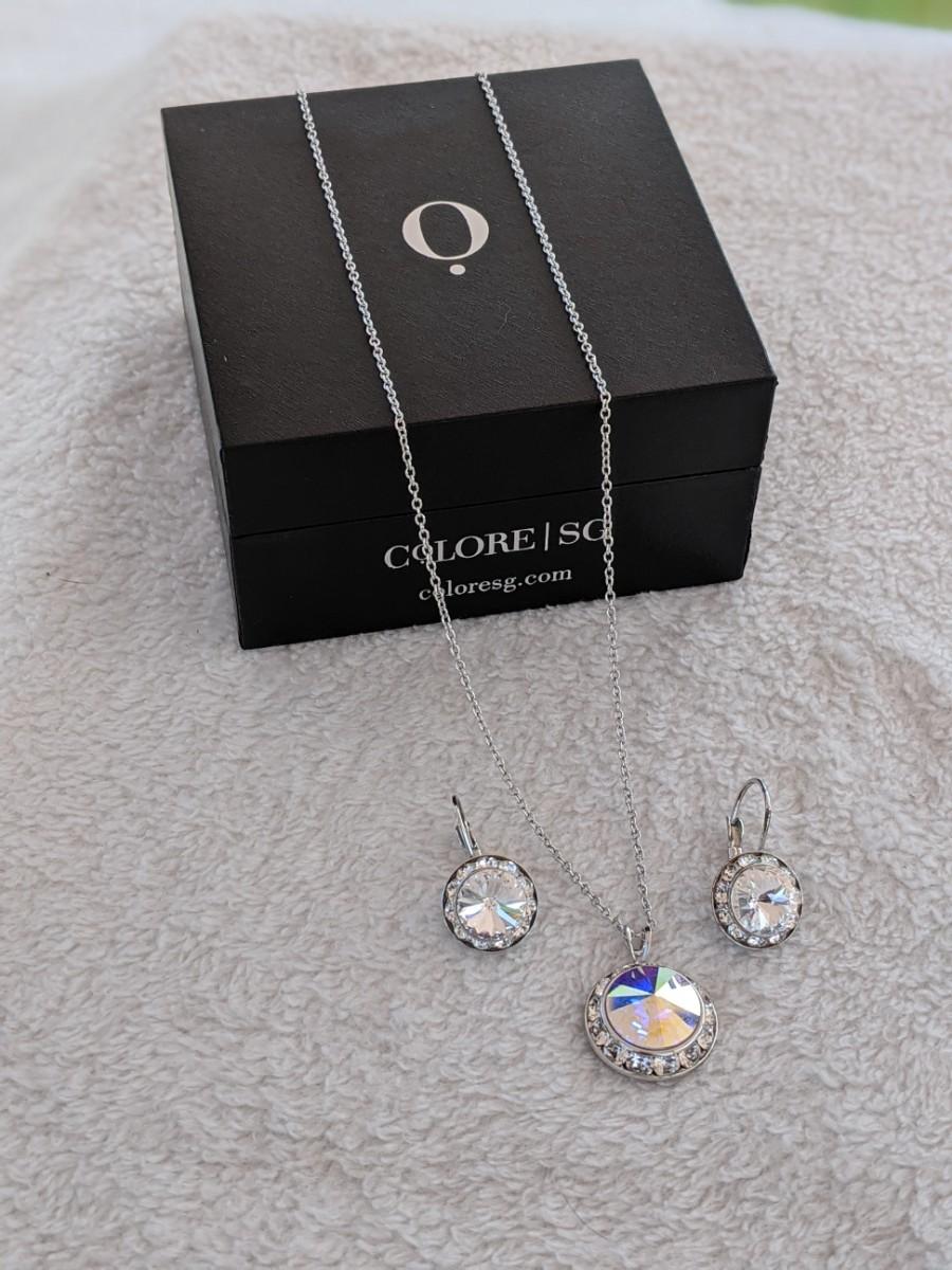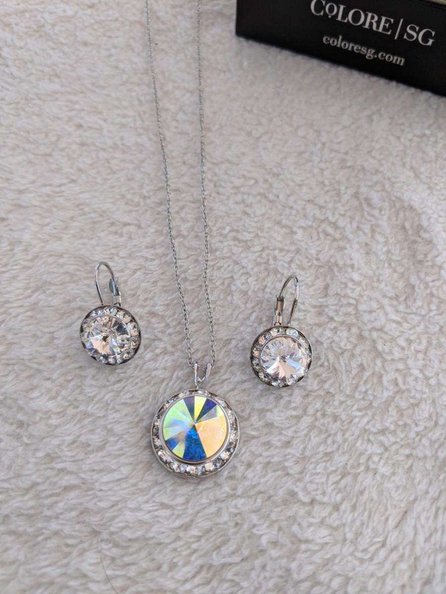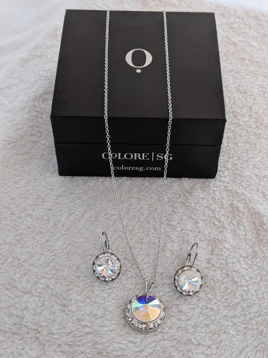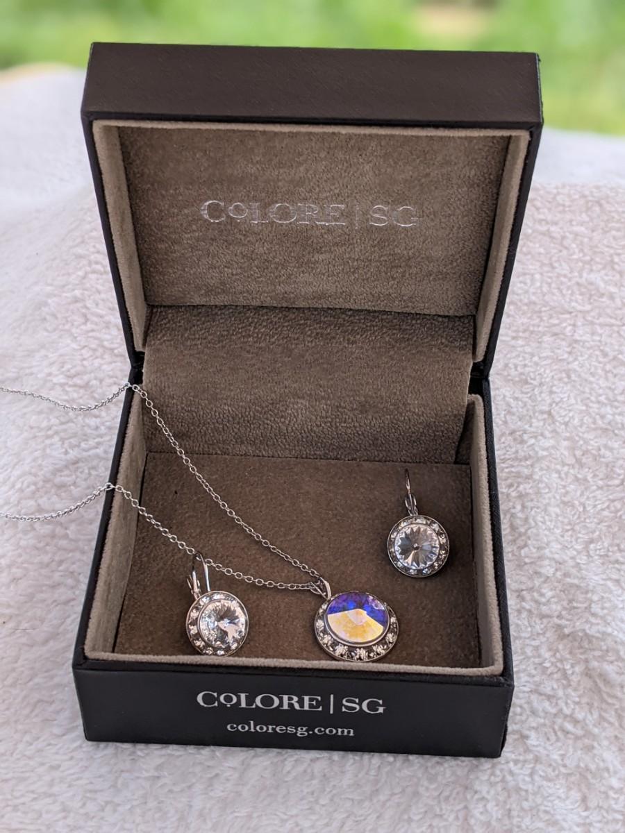 Colore designer necklace and earring set. Please see all pictures as they are the best representation of the items. The pictures show condition, measurements if taken, and what is included in the lot. Due to the large amount that we photograph and the time frame, we are not always able to take measurements. All items unless noted, are pre-owned and have been used. If you purchased furniture, you must bring help. We do not allow one person to carry large furniture out on their own. Bring help, tools and a truck for the safety of our client’s homes, and your personal safety.