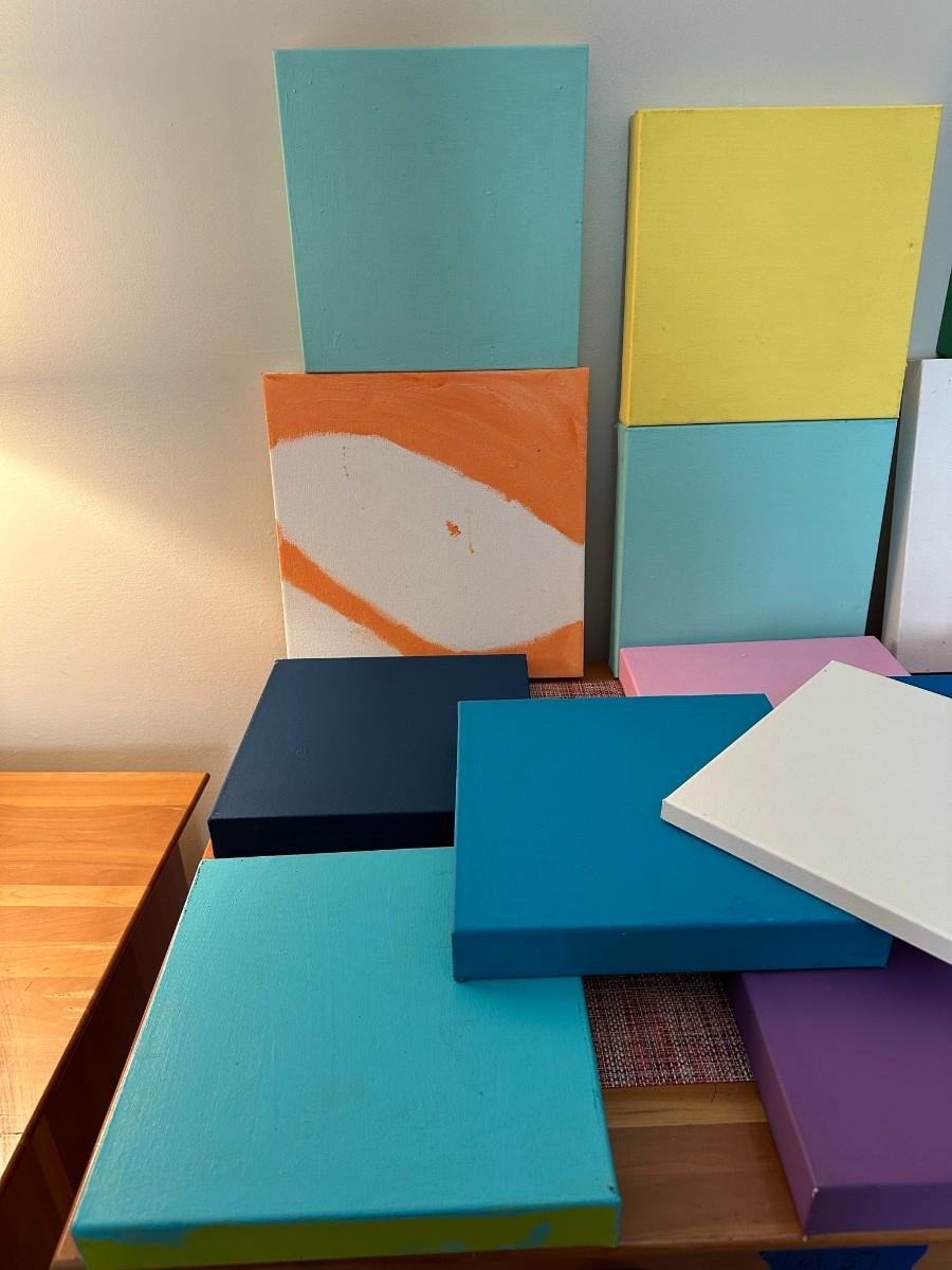 15 assorted painted canvases (2 - 12x12, 12 - 10x10, 1 - 8x10)
