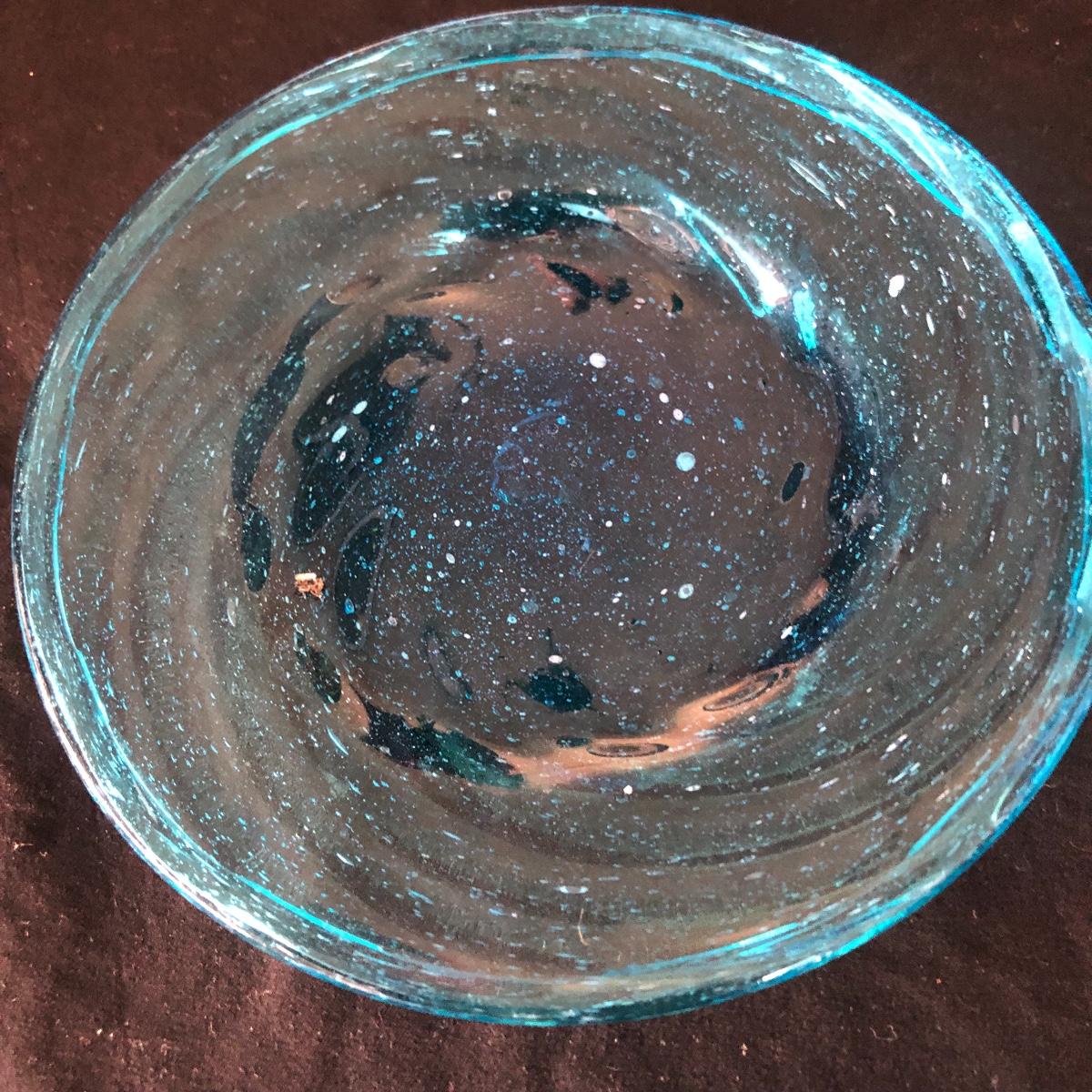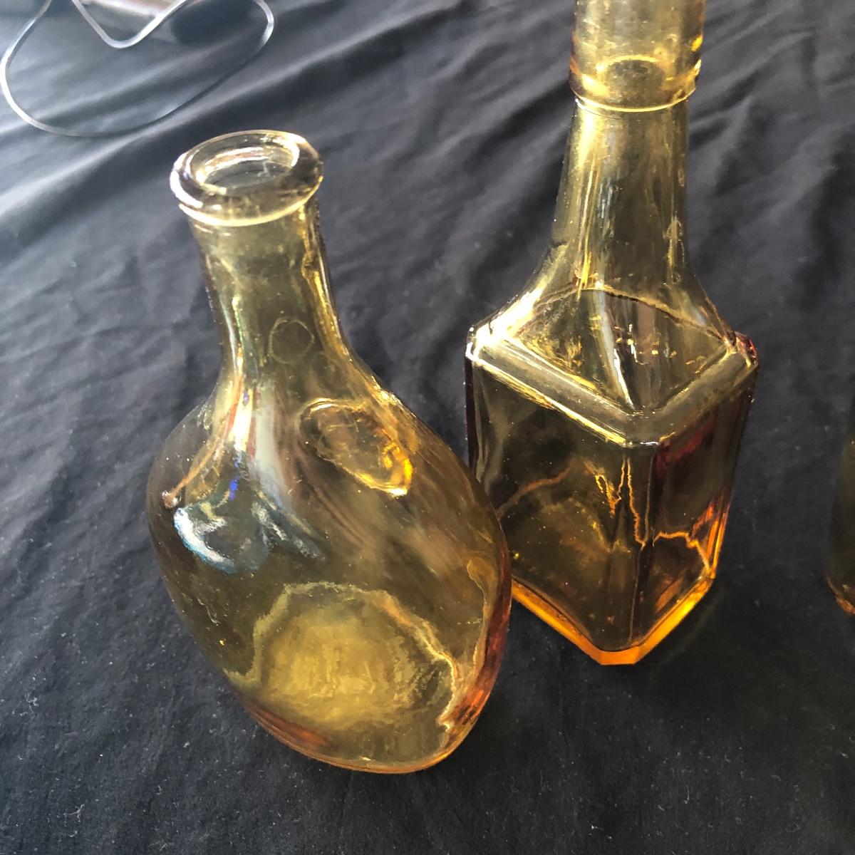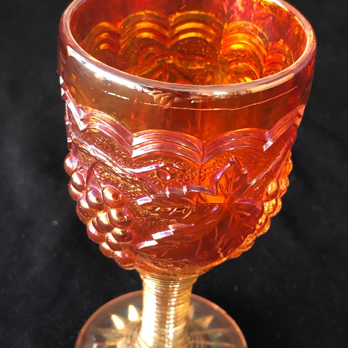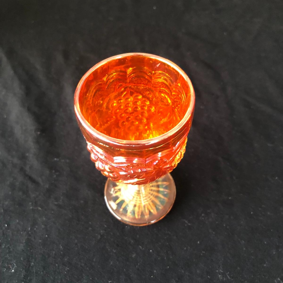 This lot includes five pieces of yellow glass (most pieces about 6” tall), two blue plates (6” in diameter), one blue bird and one orange carnival like goblet. Shipping Available.