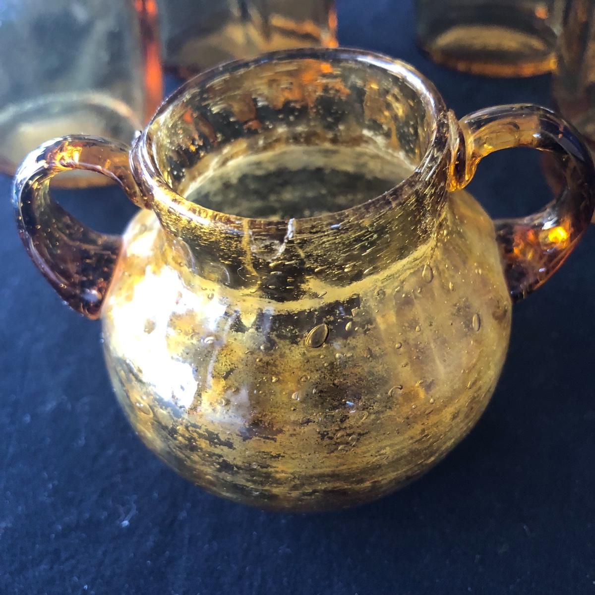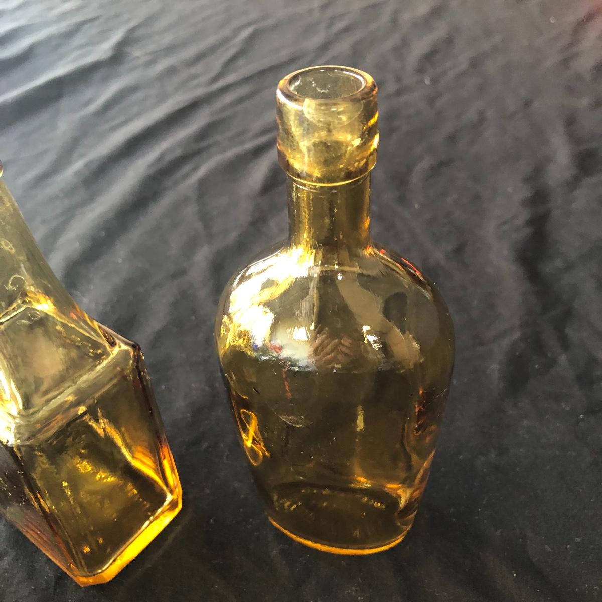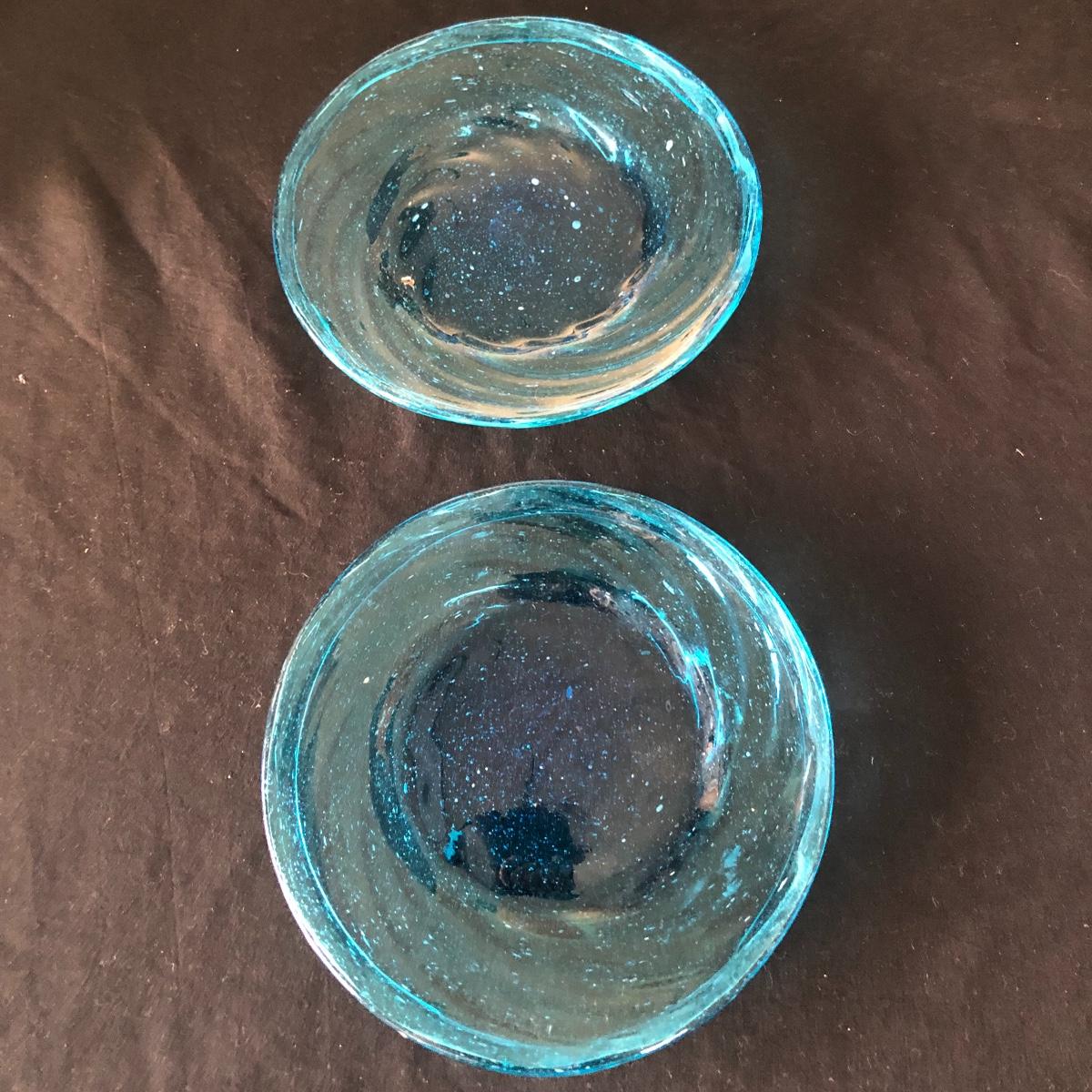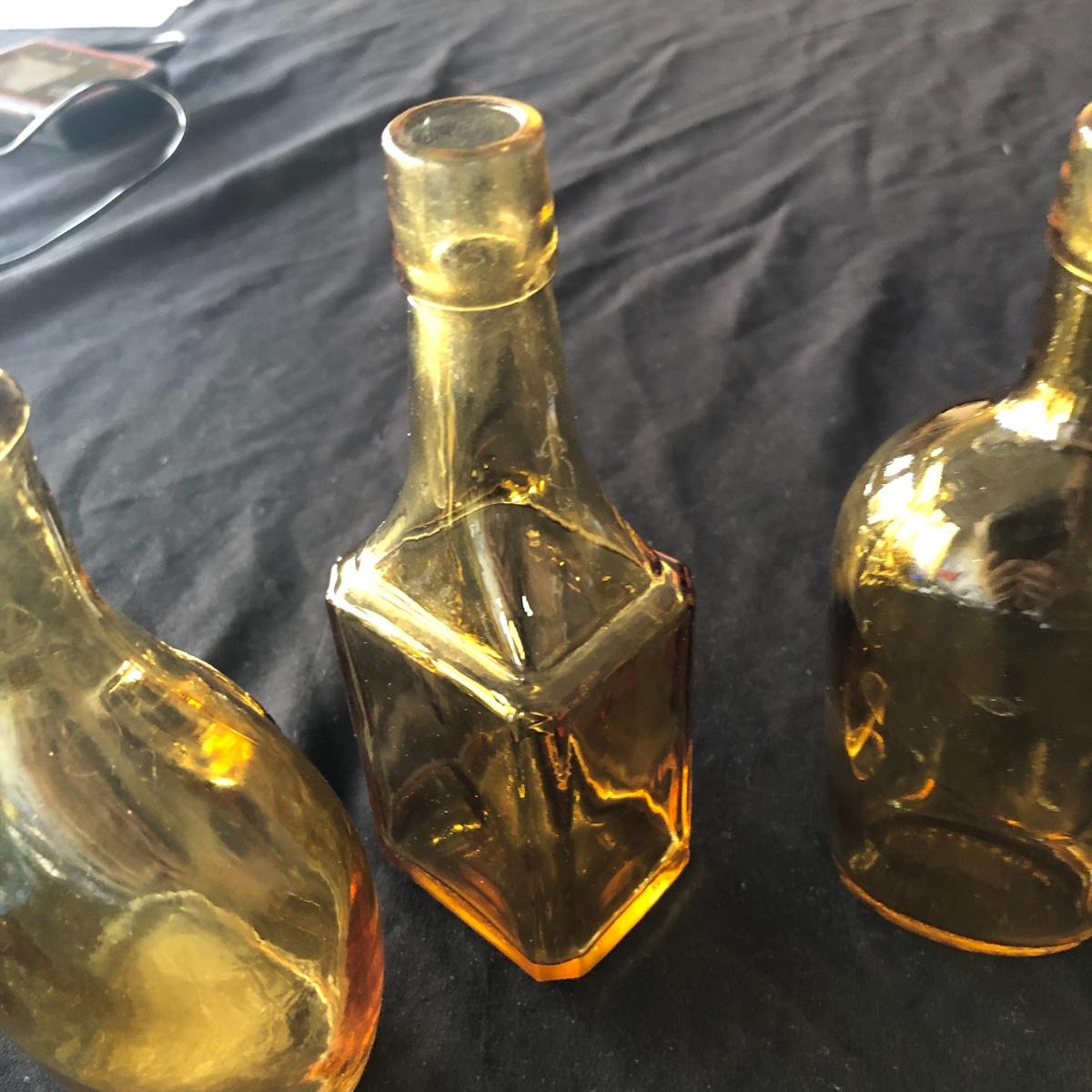 This lot includes five pieces of yellow glass (most pieces about 6” tall), two blue plates (6” in diameter), one blue bird and one orange carnival like goblet. Shipping Available.