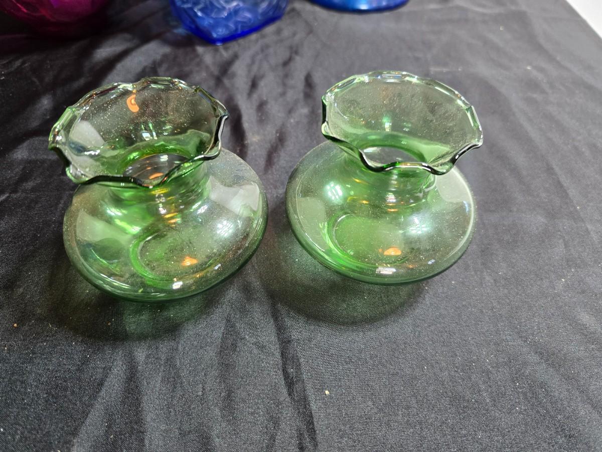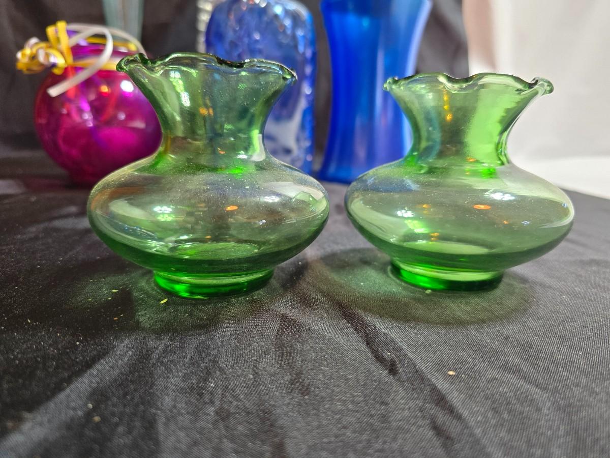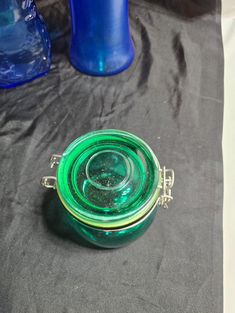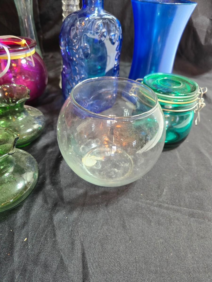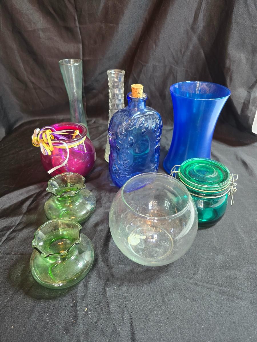 Variety of neat Colored glass vases, jar and bottles