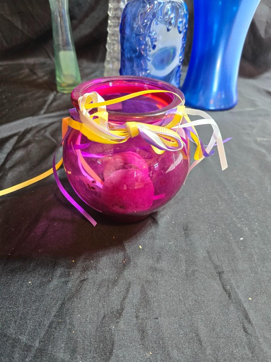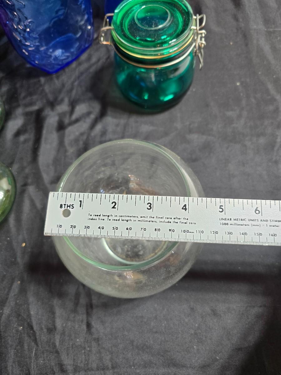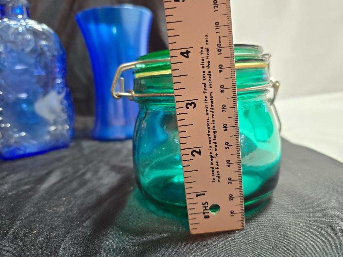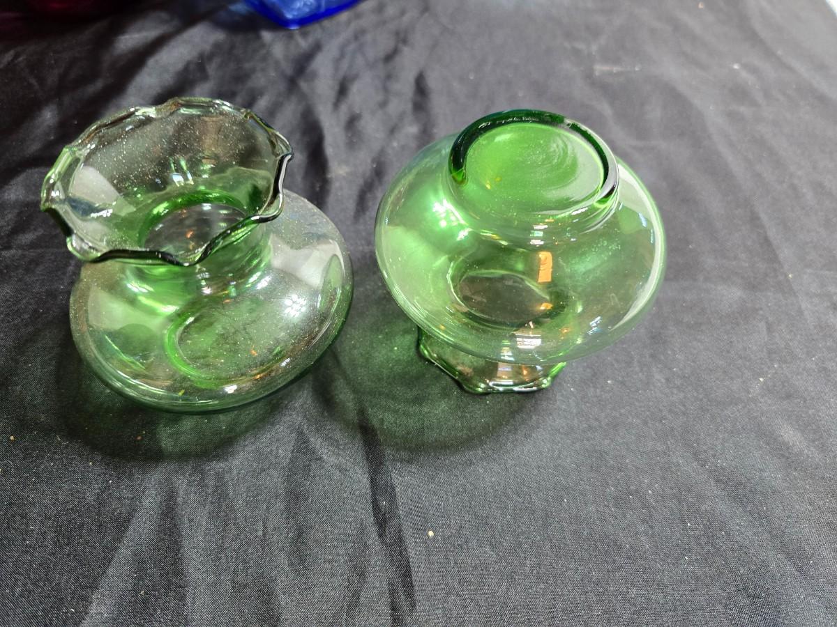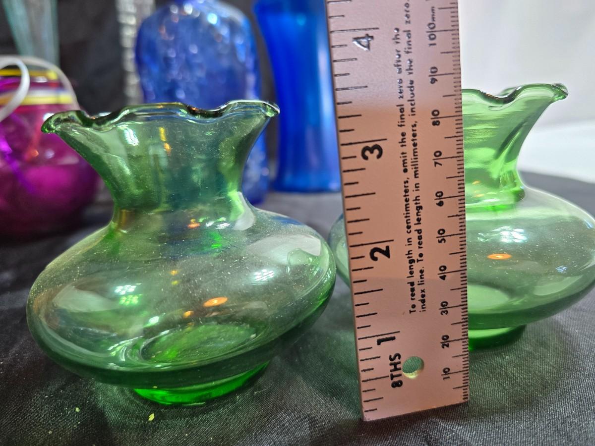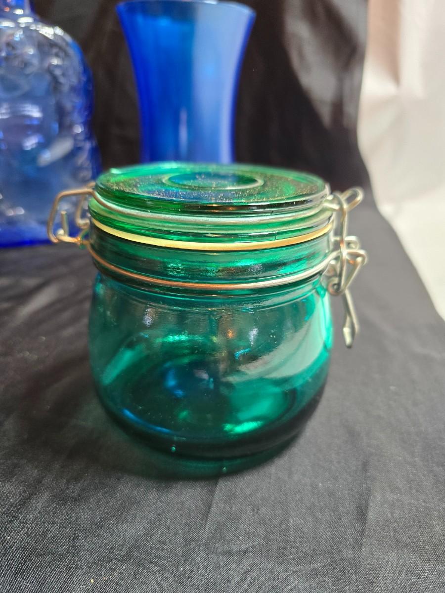 Variety of neat Colored glass vases, jar and bottles