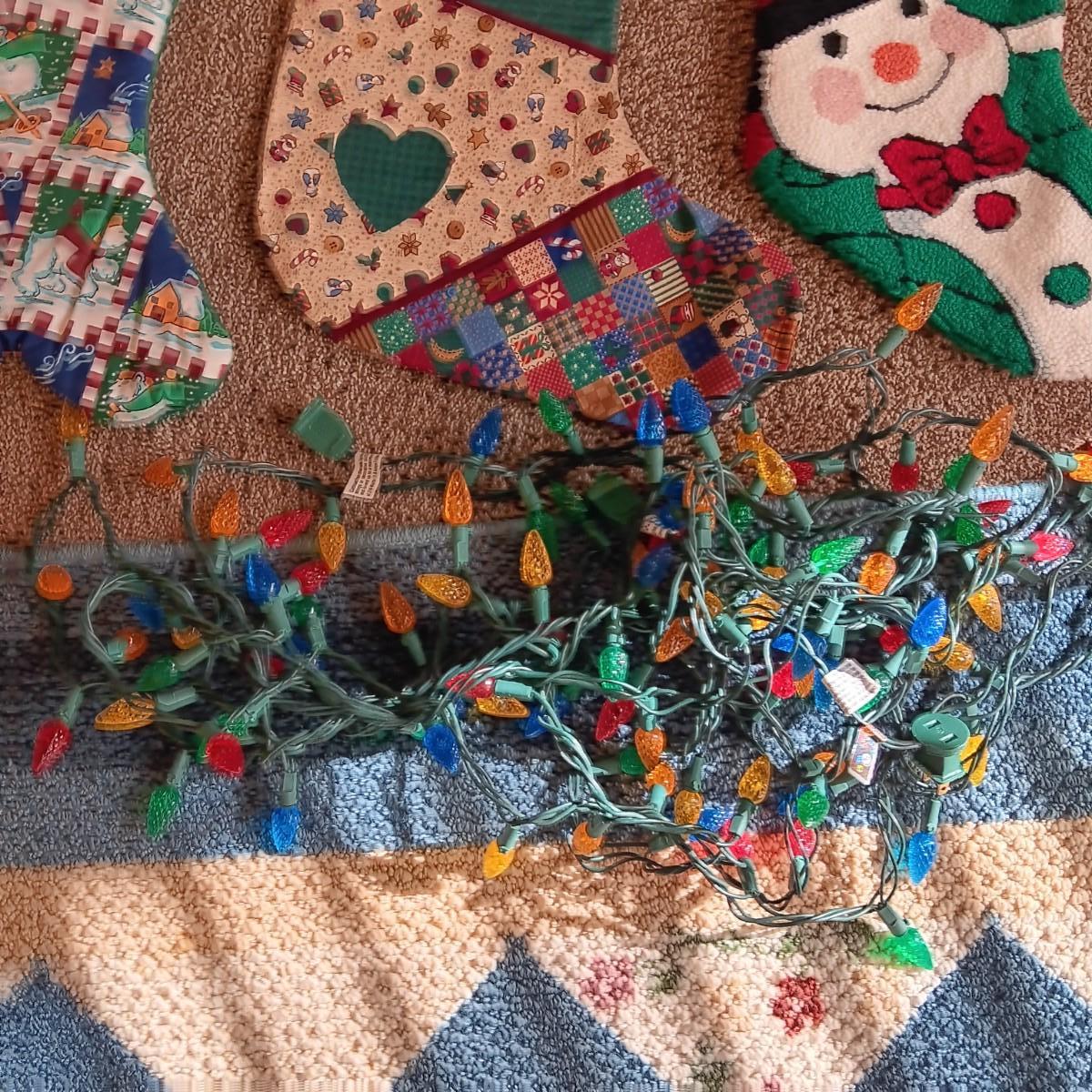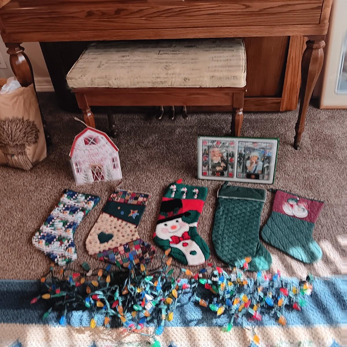 COLORED LED LIGHTS, CHRISTMAS STOCKINGS, FRAME AND MORE