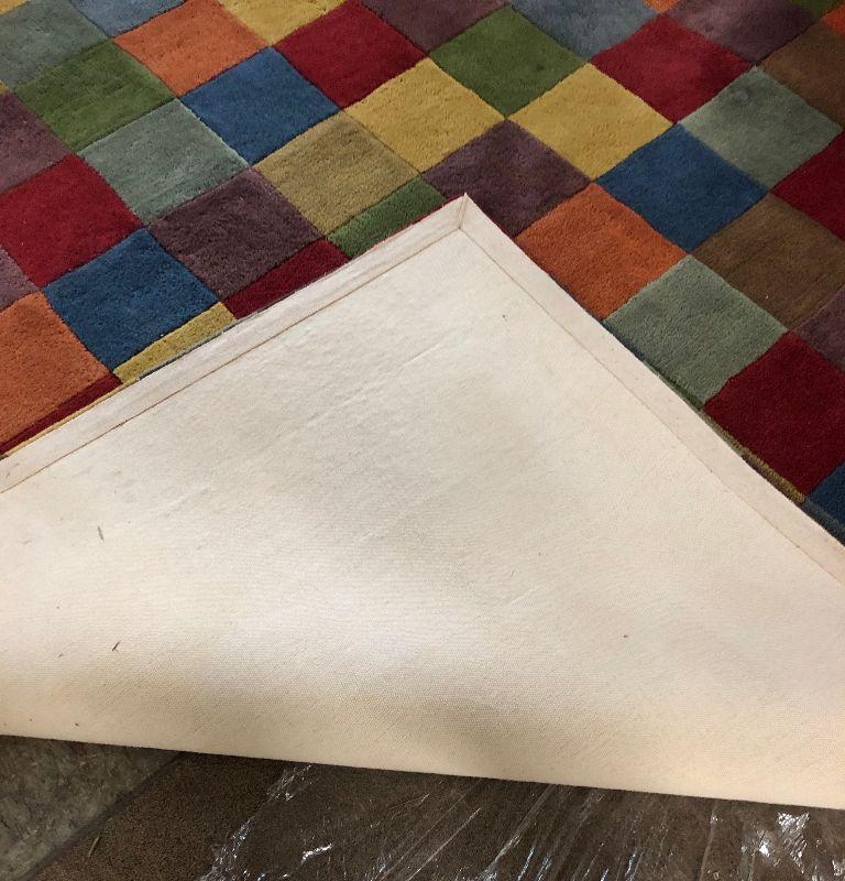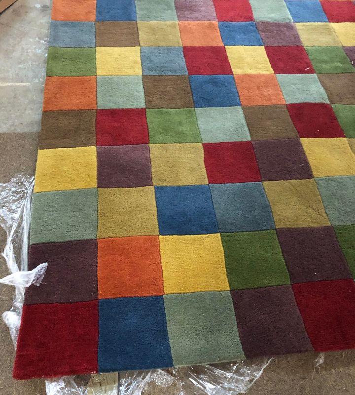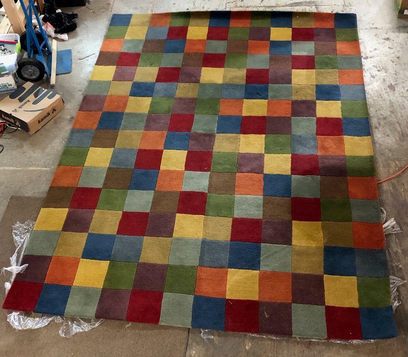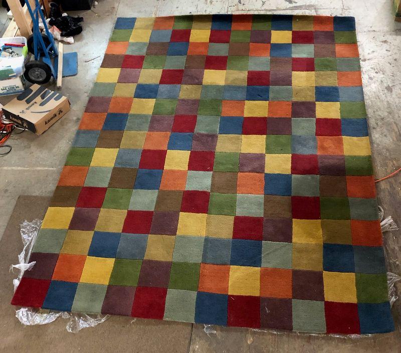 Very nice condition with little or no sign of use here is an 11' by 8' multi colored squares rug...contemporary...