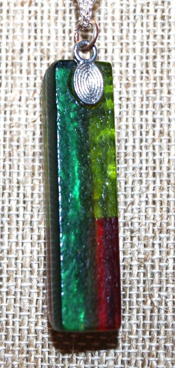 Colorful Acrylic Rectangle PENDANT (1¾" x ¼") on a Silver Tone Adjustable Necklace Chain 16"-18" L