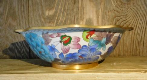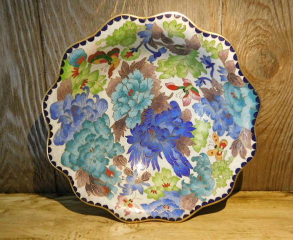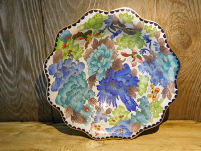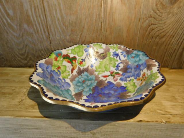 Colorful and Bright Butterfly and Flowers Cloisonne Open Bowl 10"