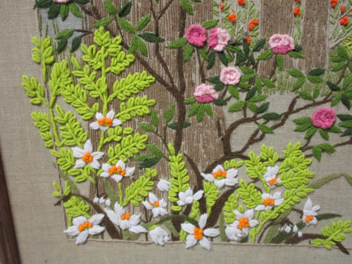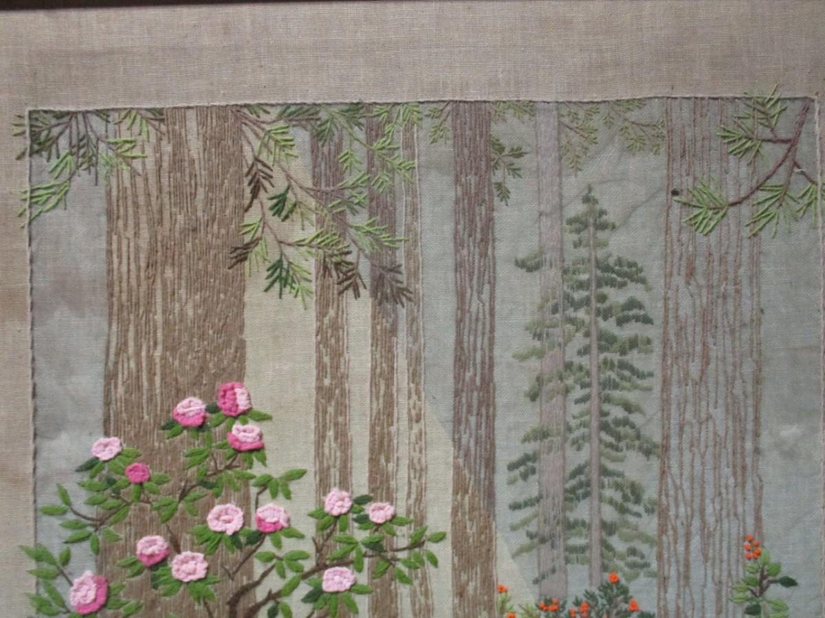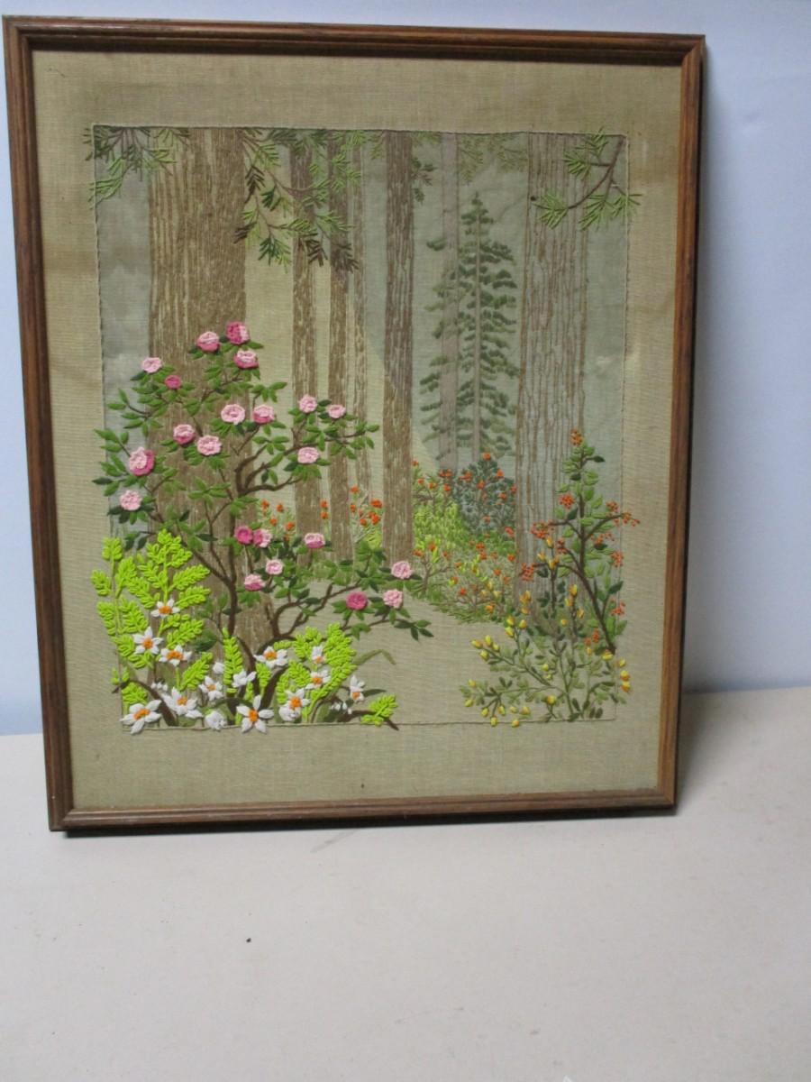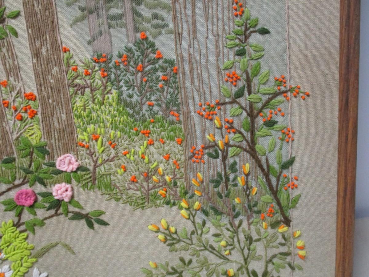 Colorful and Highly Detailed Framed Forest Needlework Art 26 3/4" x 32"