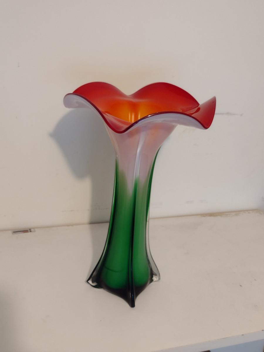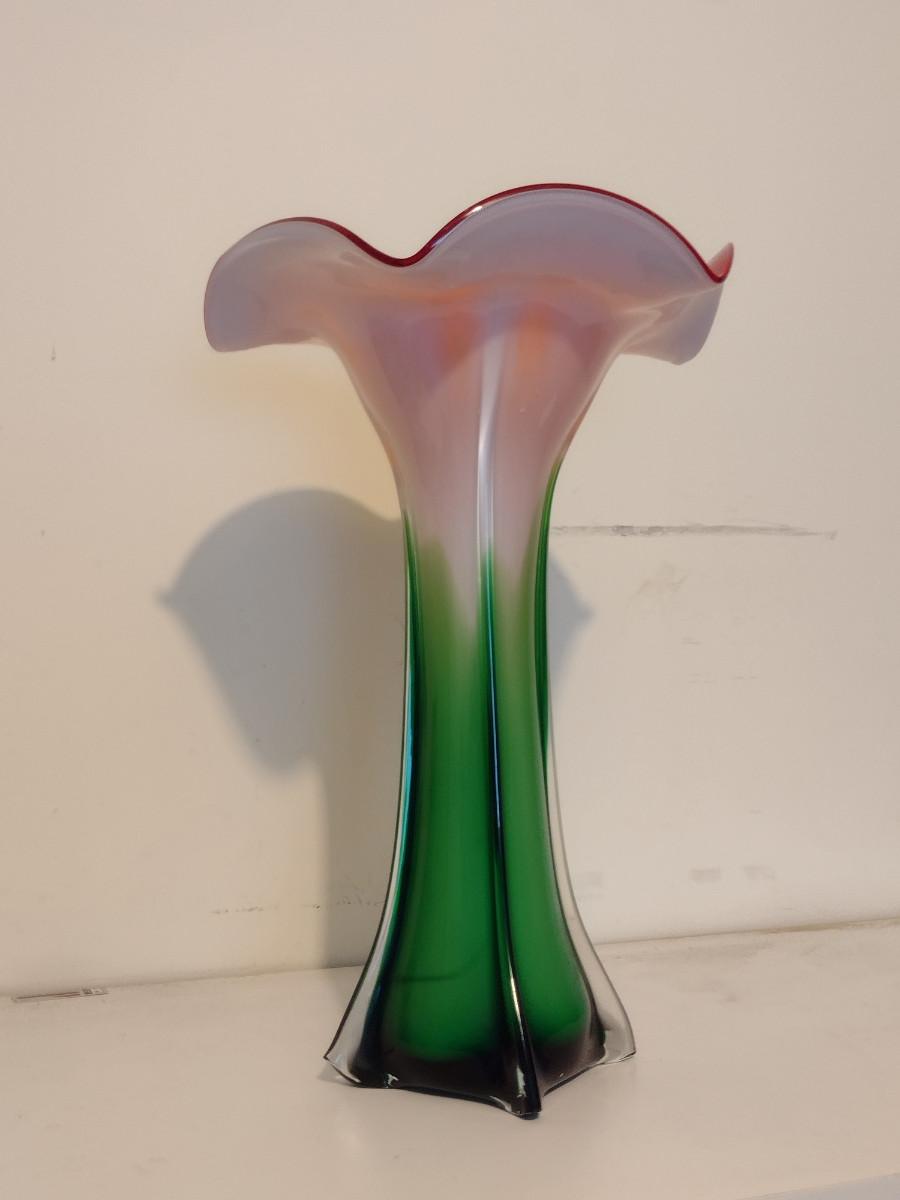 Colorful Art Glass Trumpet Vase- Approx 14 1/4" Tall