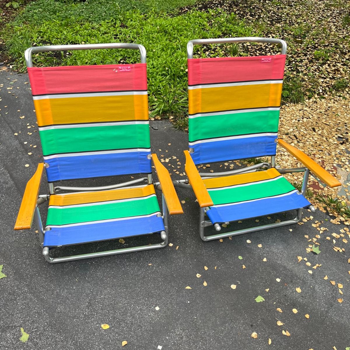 Lot includes three Rio chairs and one Copa chair and largest chair measures 26” x 30” x 31”.