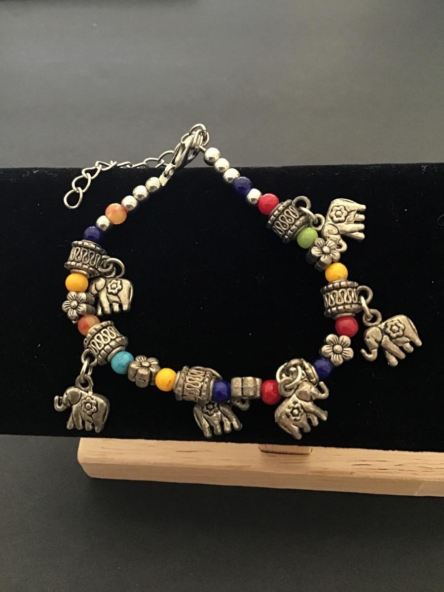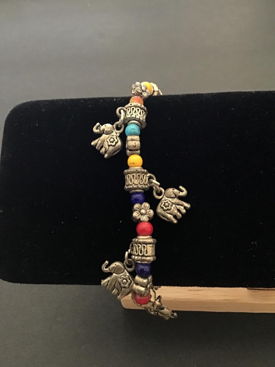 Colorful beaded elephant charm bracelet