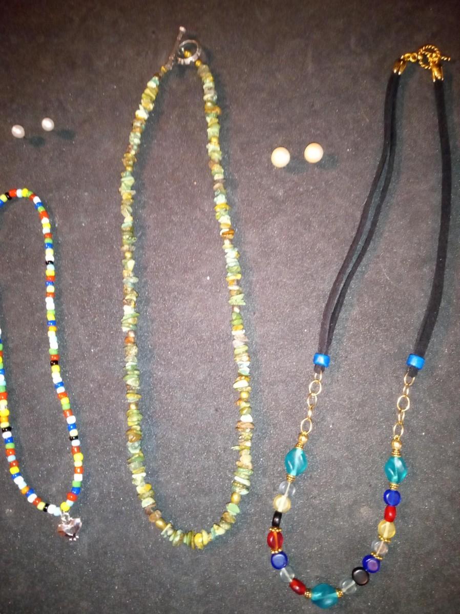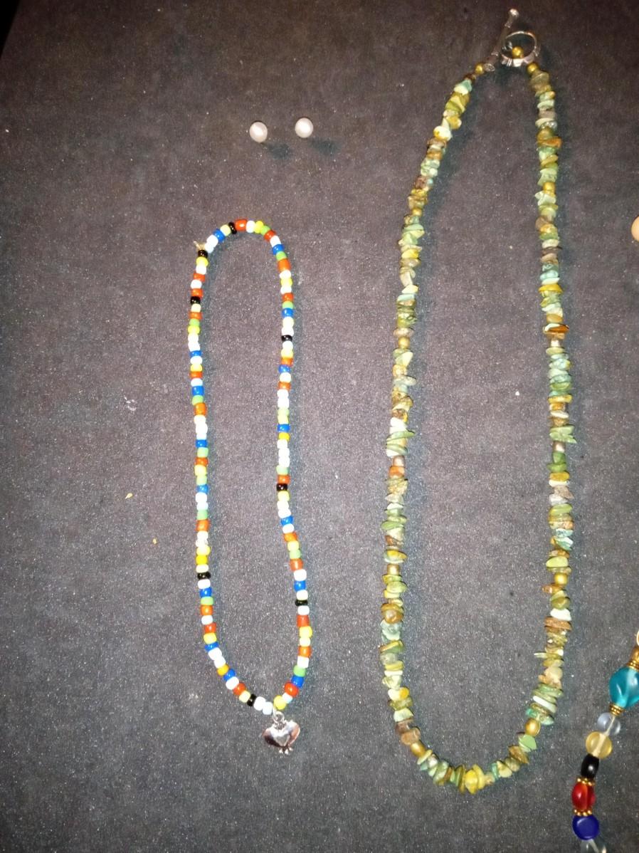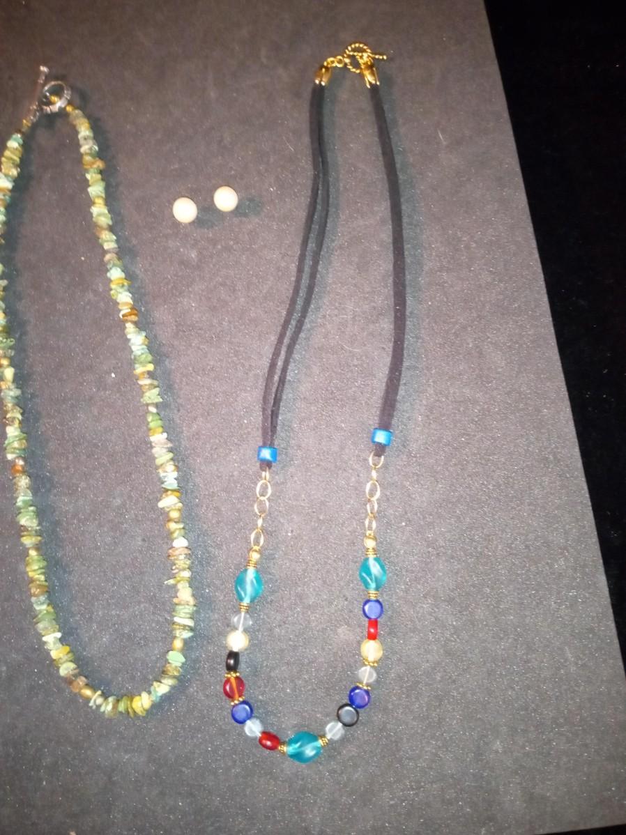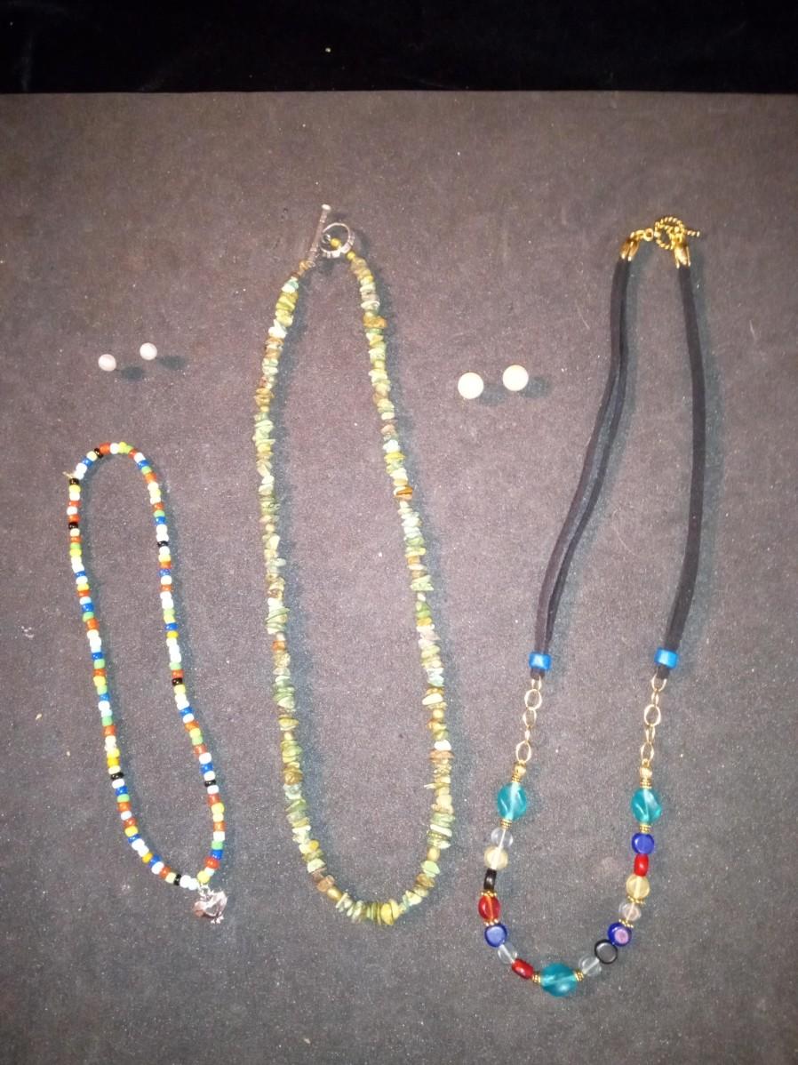 COLORFUL BEADED/STONE NECKLACES AND 2 PIERCED EARRINGS
