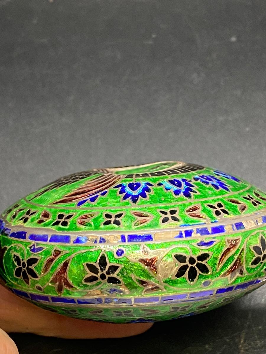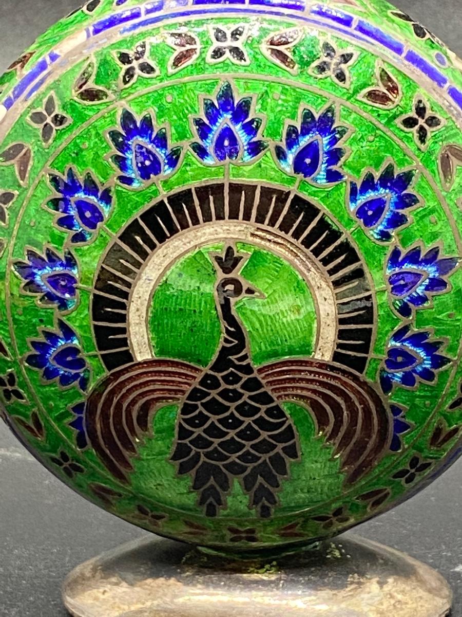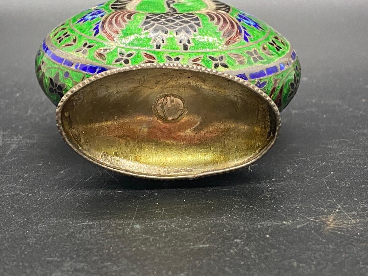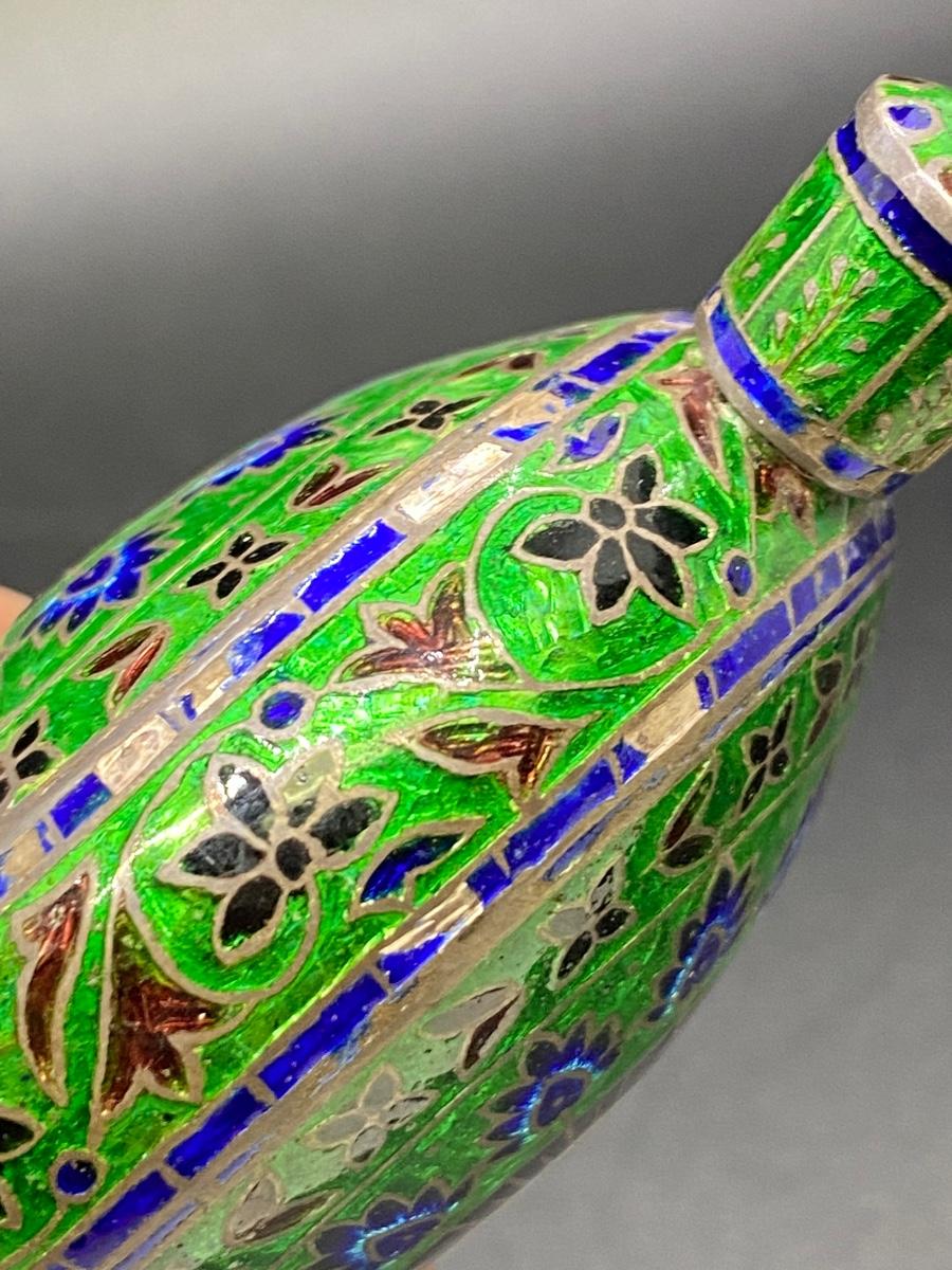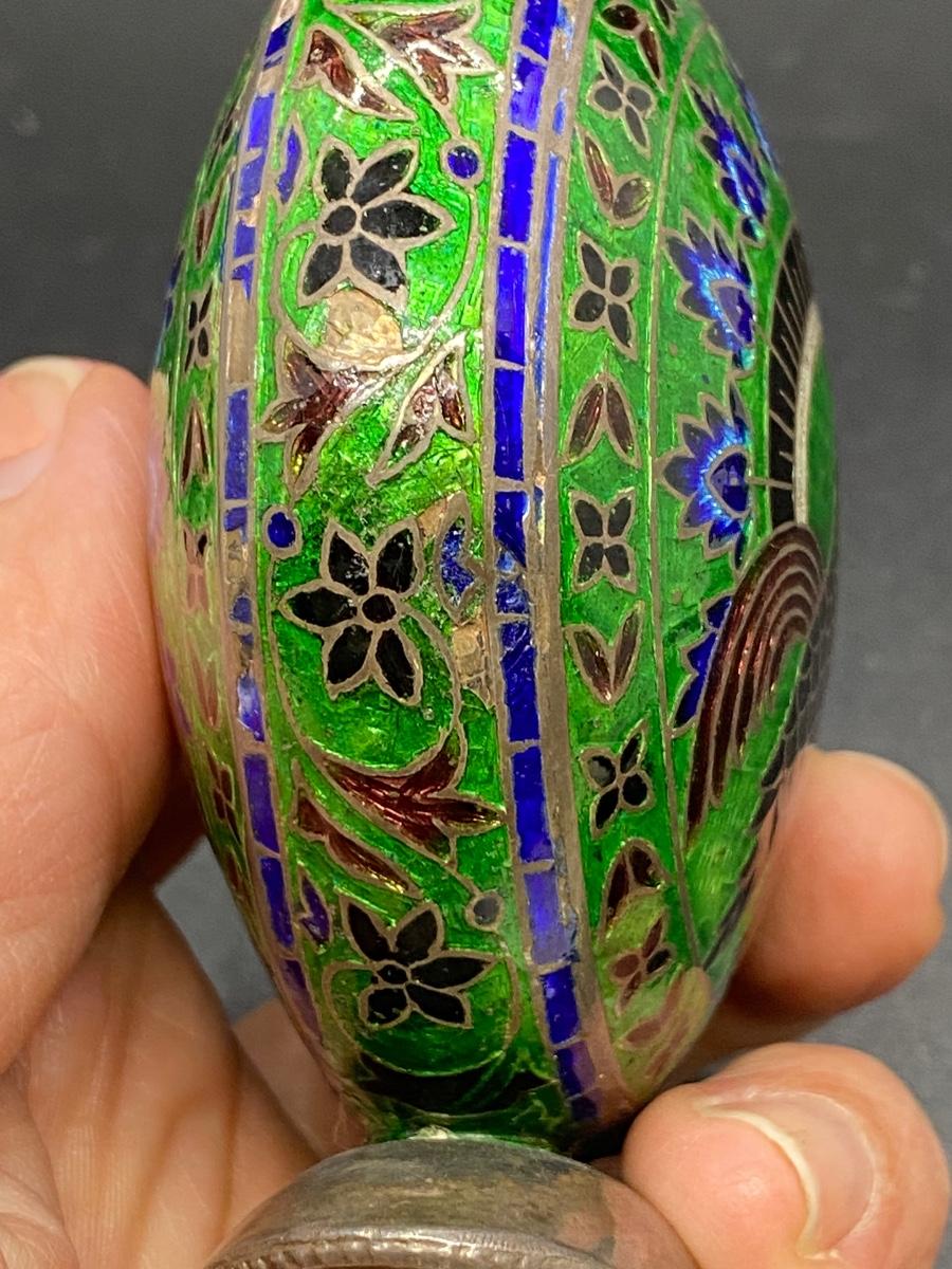 Colorful Blue Green Peacock Cloisonne Enameled Metal Perfume Snuff Bottle Flask