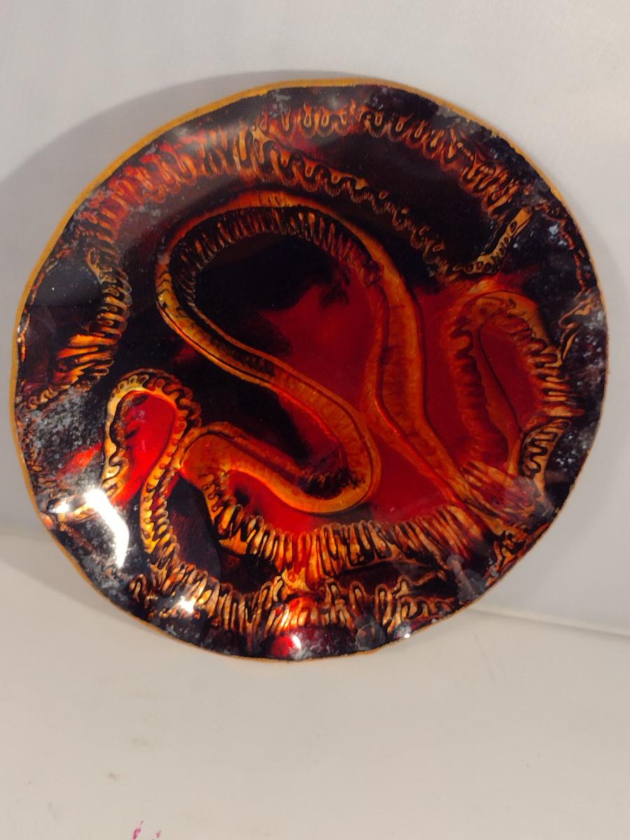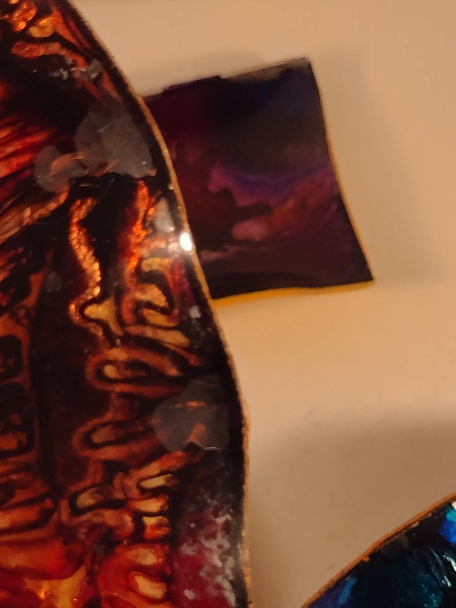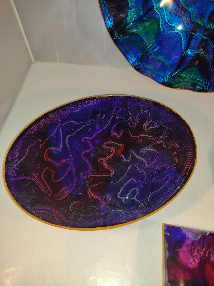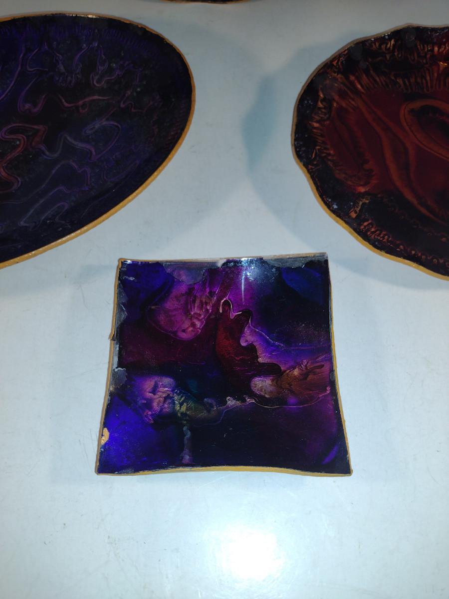 Colorful Bowls and Plates for Wall Hanging. Items (especially small, square one) have some de-lamination/chipping.